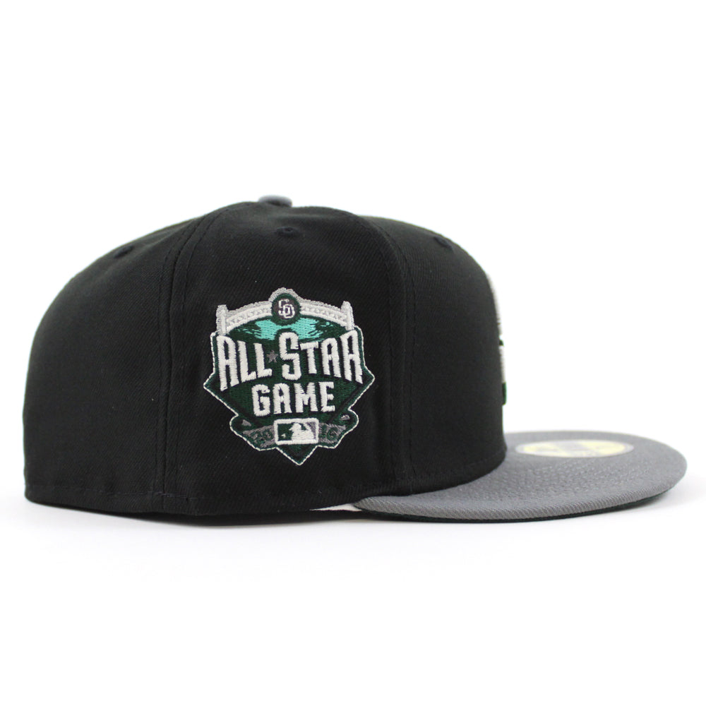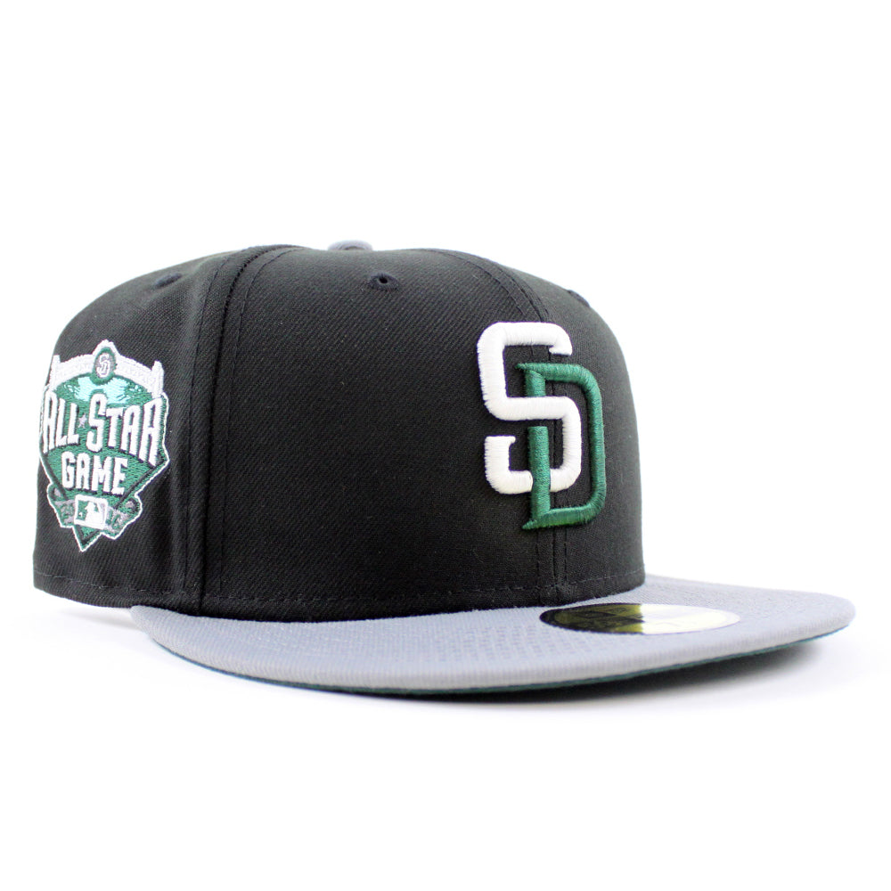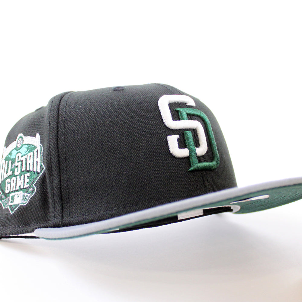 San Diego Padres 2016 All-Star Game New Era Fitted 59Fifty Hat in Black with Stone Gray Visor & Dark Green Under Brim.