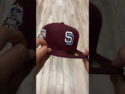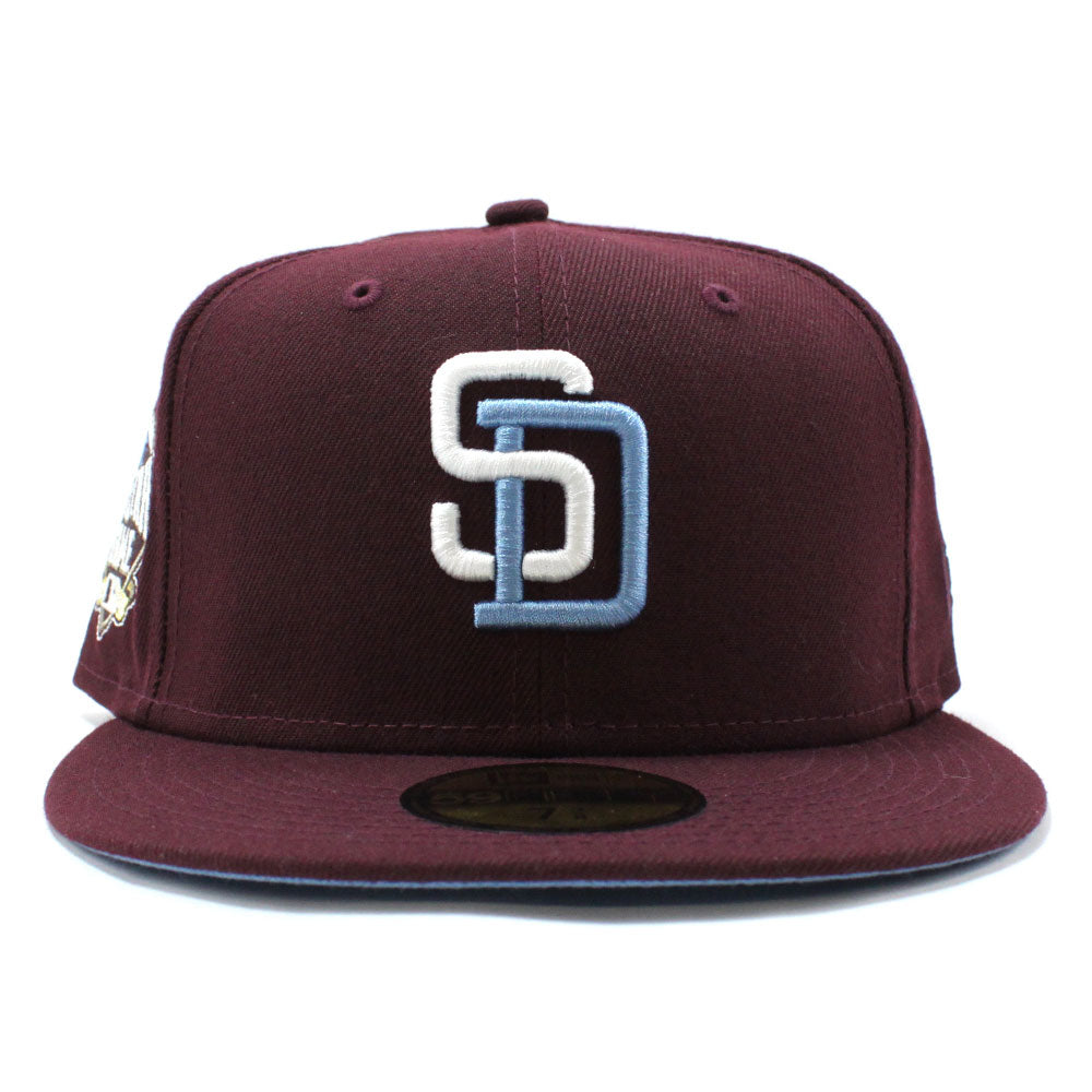 San Diego Padres 2016 All Star Game New Era Fitted 59Fifty Hat in Maroon & Sky Blue Under Brim. (Icy Blue Bottoms)