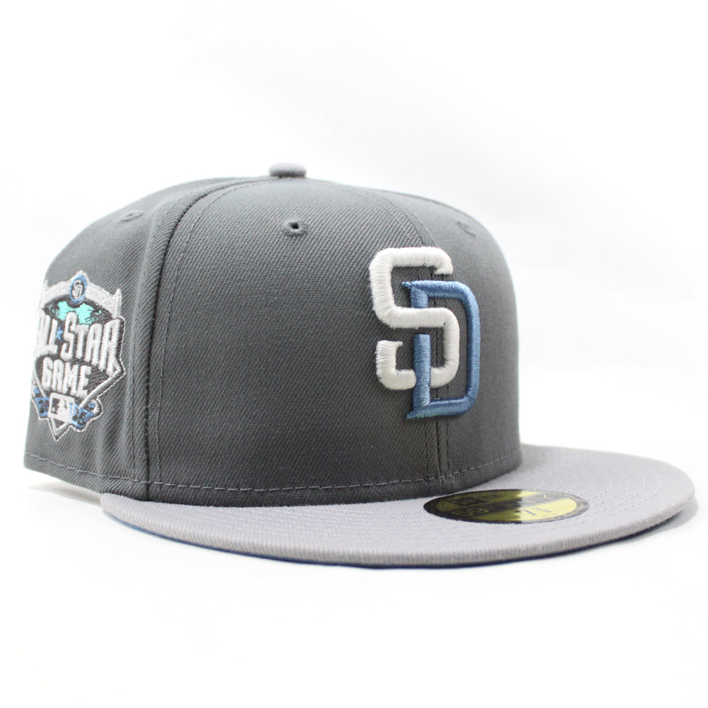 San Diego Padres 2016 All Star Game New Era Fitted 59Fifty Hat in Storm Gray with Light Gray & Sky Blue Under Brim.