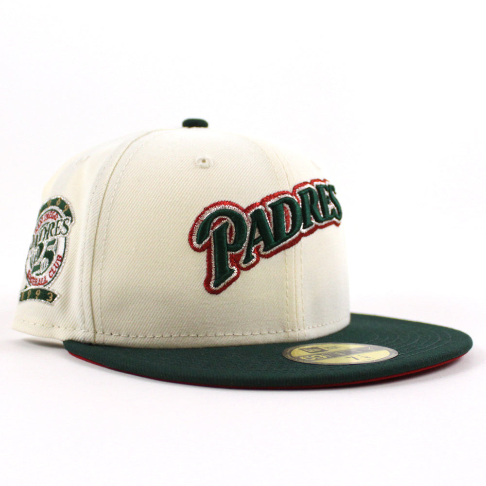 San Diego Padres 25th Anniversary New Era 59Fifty Fitted Hat (Chrome White Green Red Under Brim)