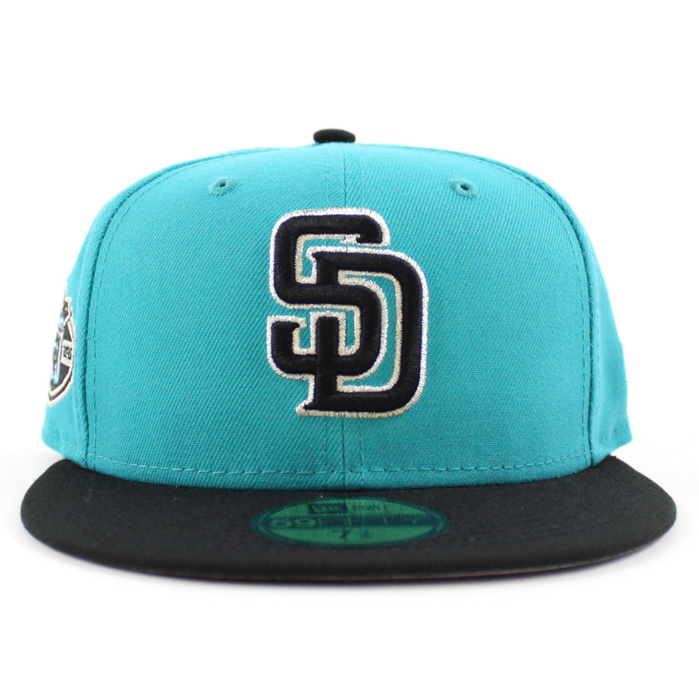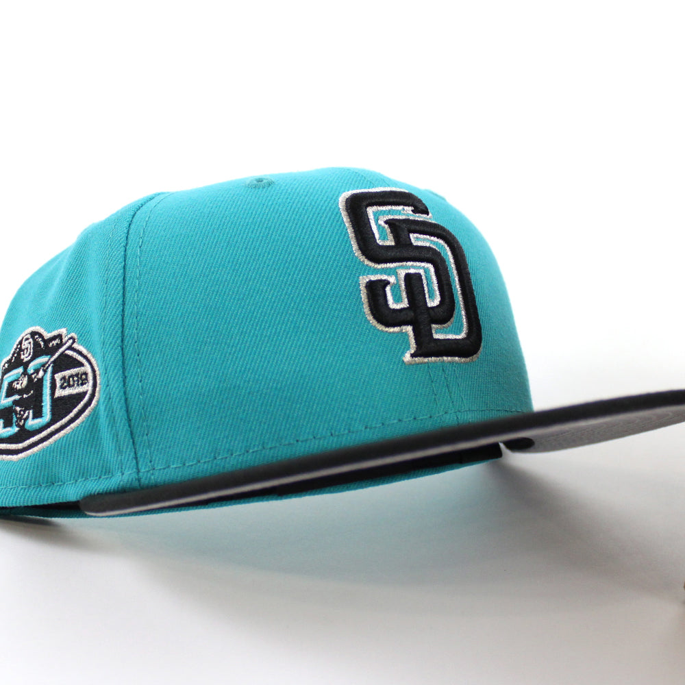 San Diego Padres 50th Anniversary New Era 59Fifty Fitted Hat in Teal Black & Gray Under Brim.