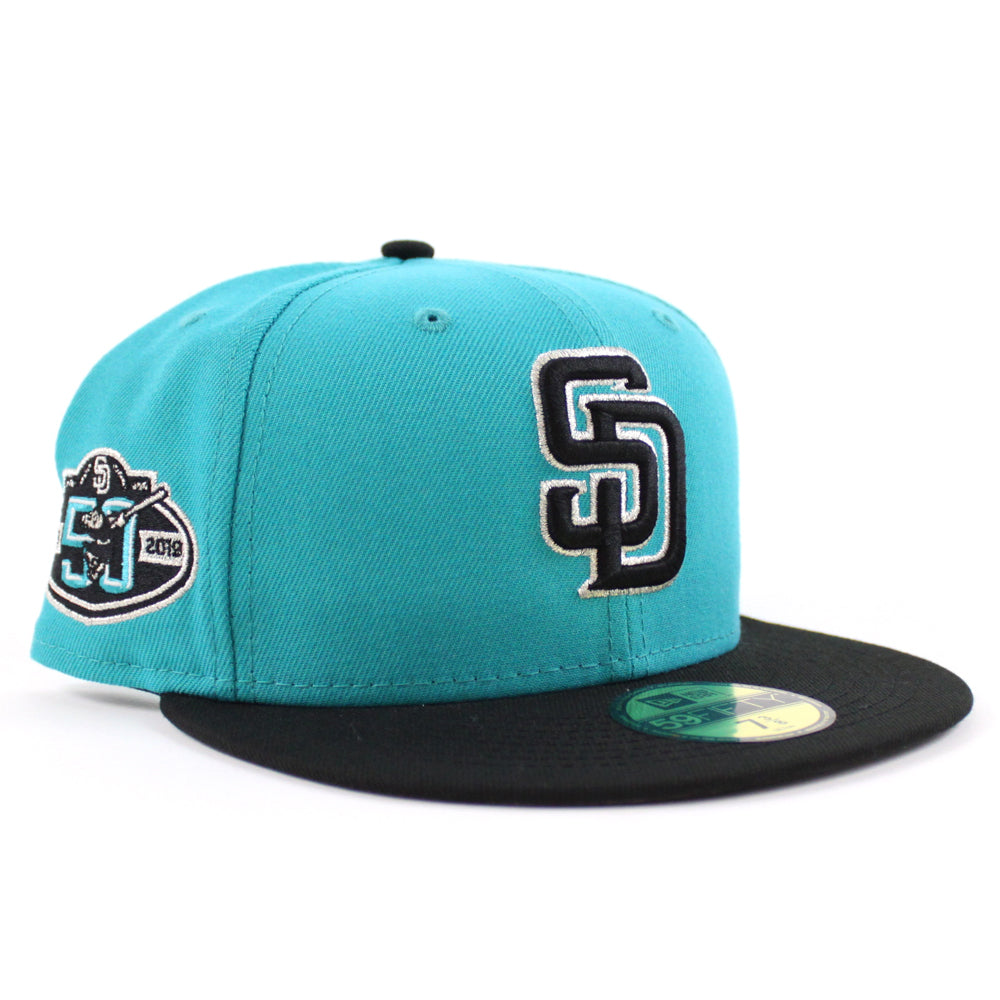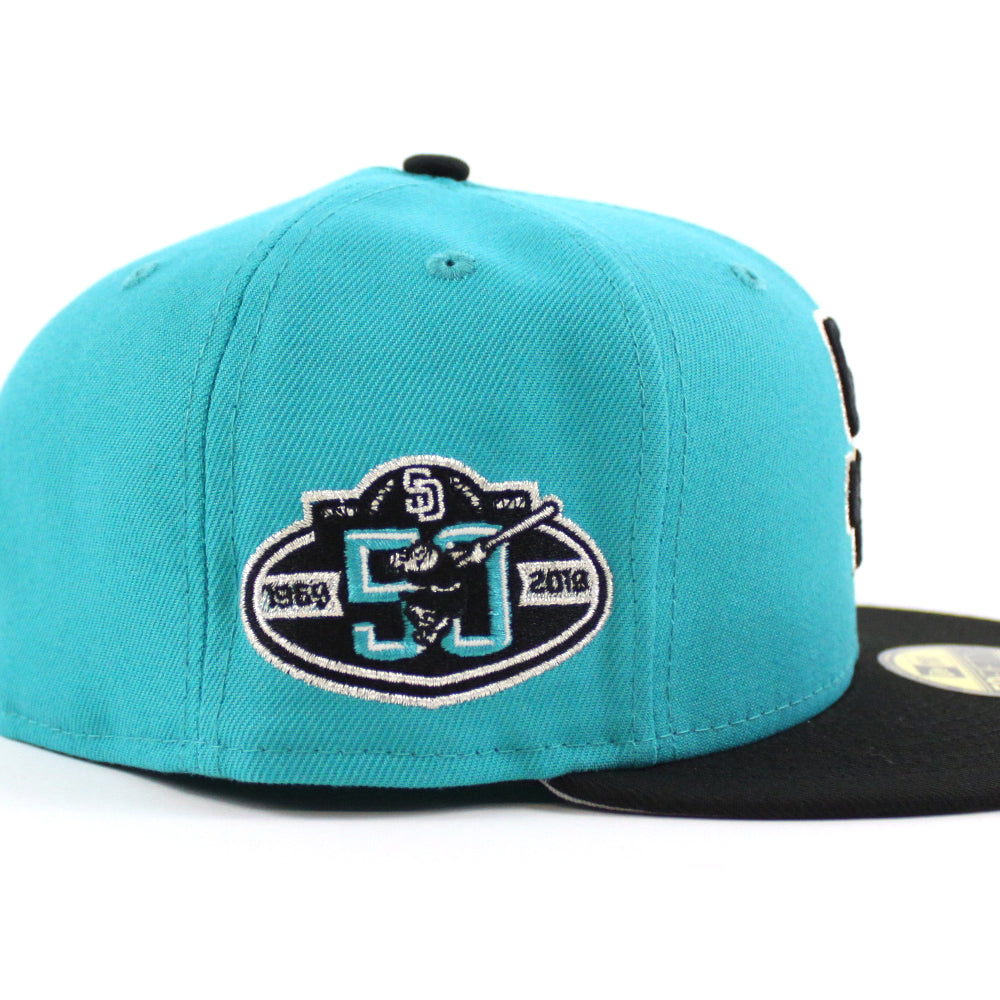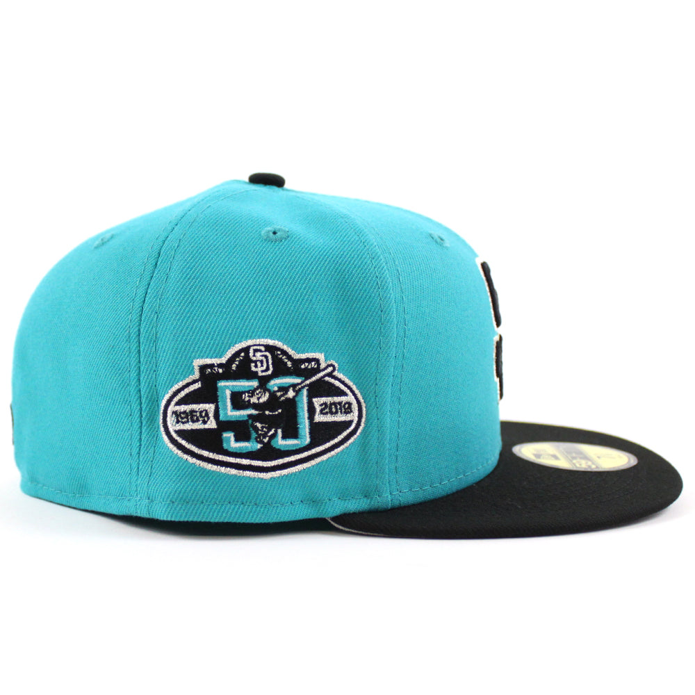 San Diego Padres 50th Anniversary New Era 59Fifty Fitted Hat (Teal Black Gray Under Brim)