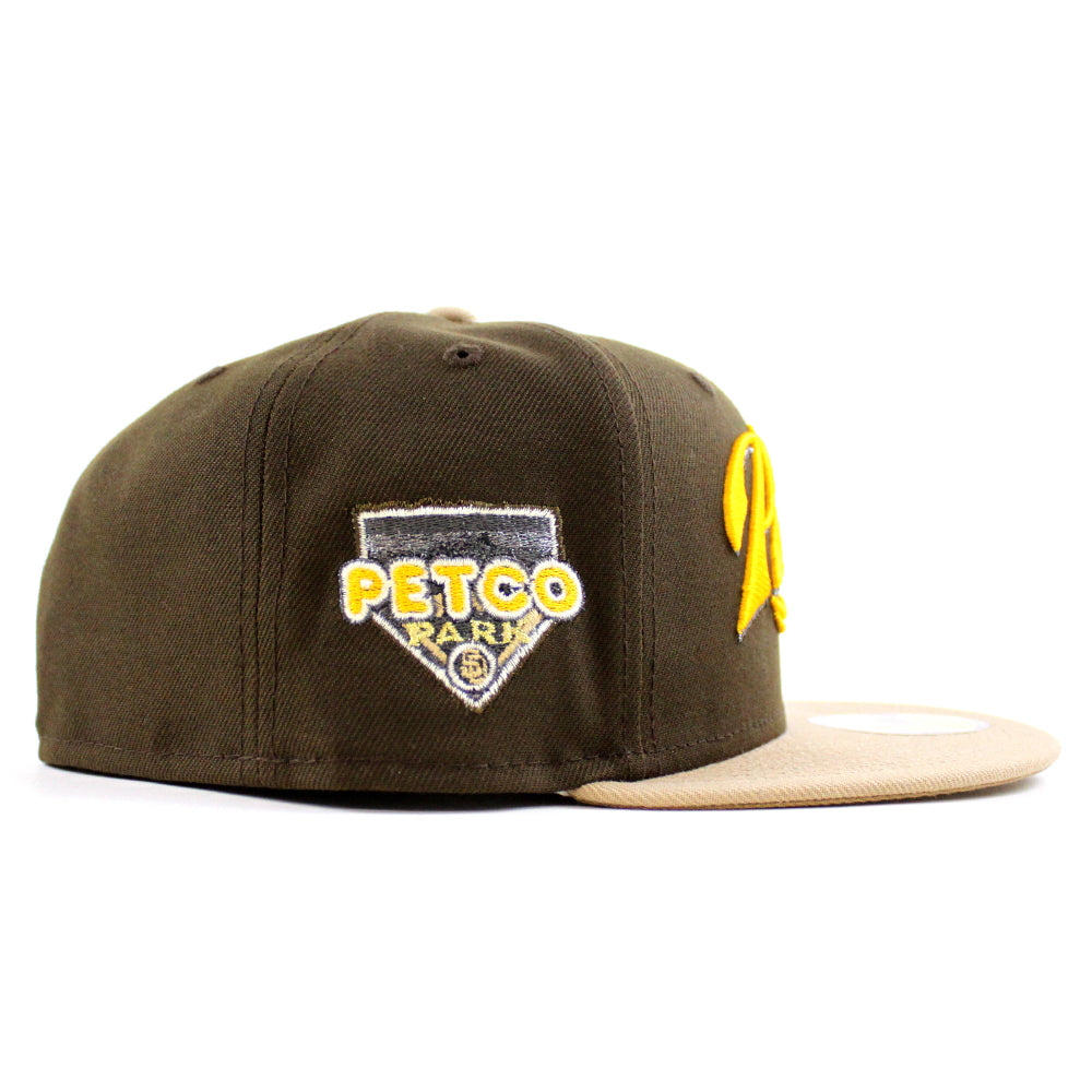 San Diego Padres Petco Park New Era 59Fifty Fitted Cap in Walnut, Camel and Khaki Under Brim. 24