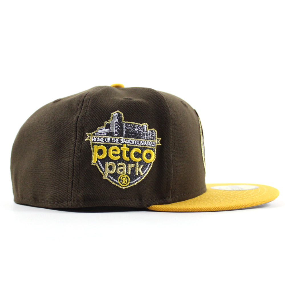 San Diego Padres Petco Park New Era 59Fifty Fitted Cap in Walnut, Gold and Gray Under Brim.