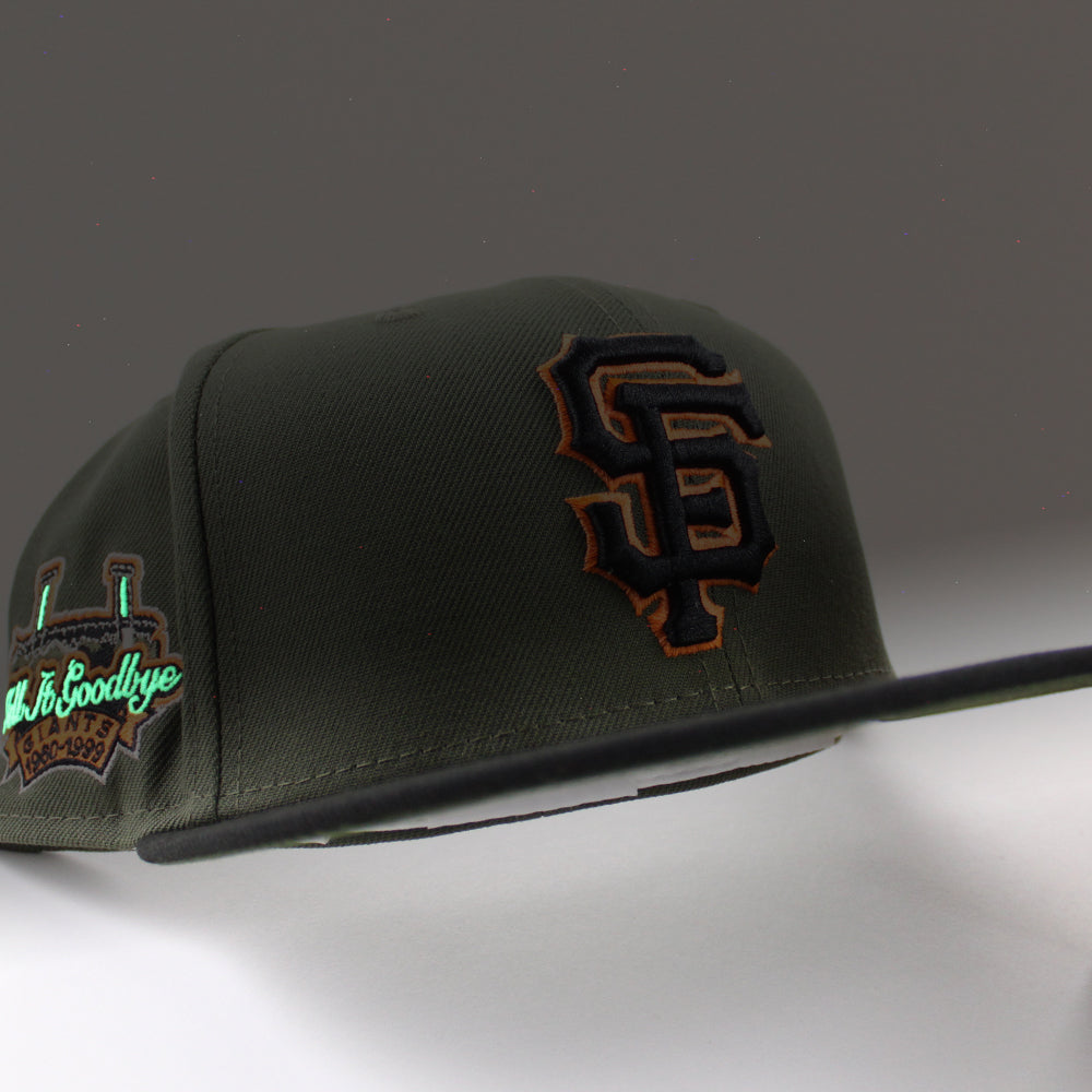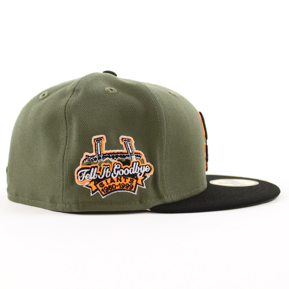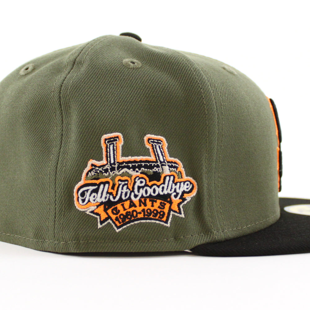 San Francisco Giants 1960-1999 TELL IT GOODBYE New Era 59Fifty Fitted Hat (Olive Black Rifle Green Under Brim)