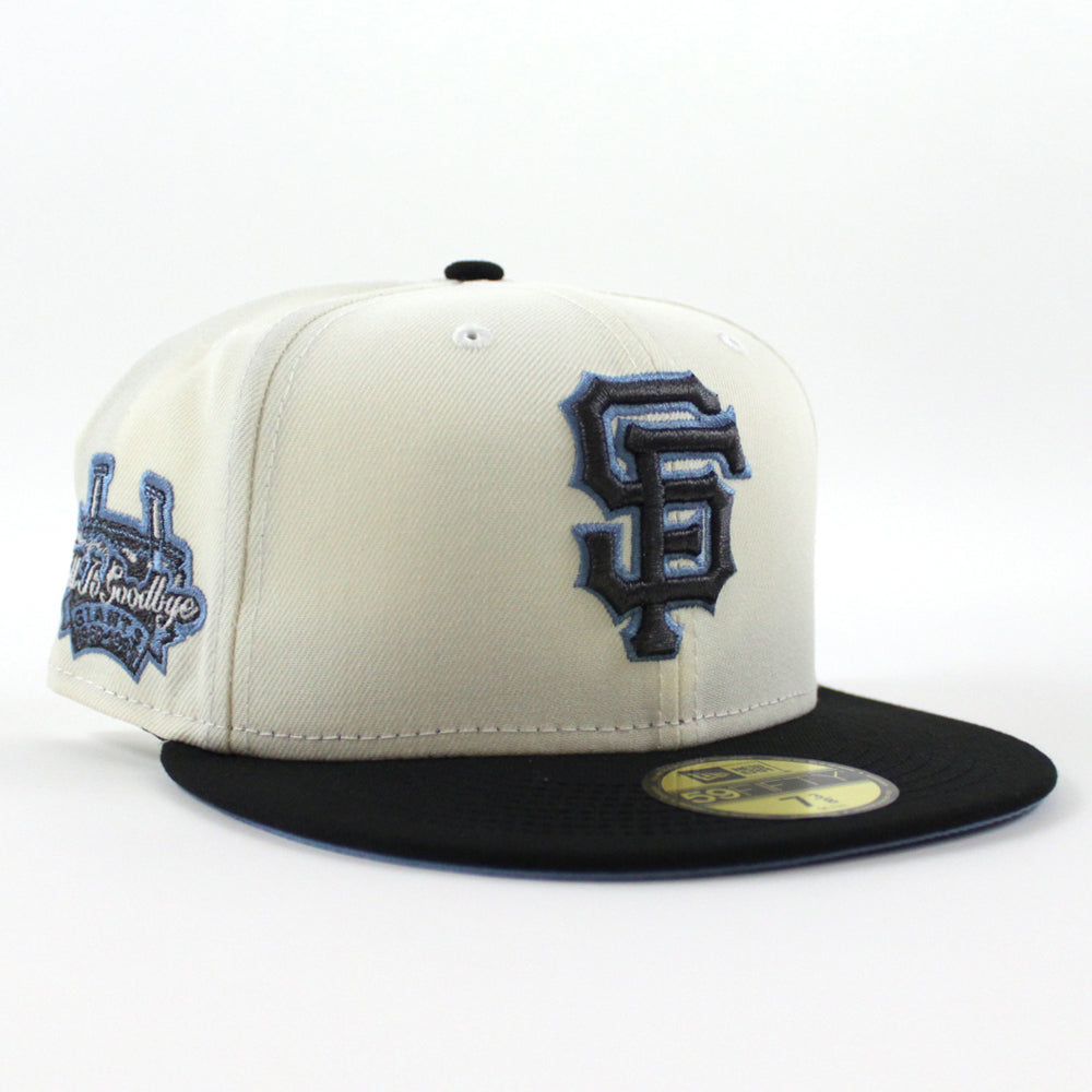 San Francisco Giants 1960 99 TELL IT GOODBYE New Era 59Fifty Fitted Hat (Chrome White Sky Blue Under Brim)