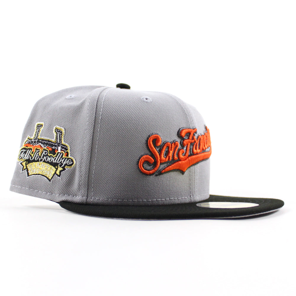 San Francisco Giants Tell It GoodBye patch New Era 59Fifty Fitted Hat in Gray, Black and Gray Under Brim.
