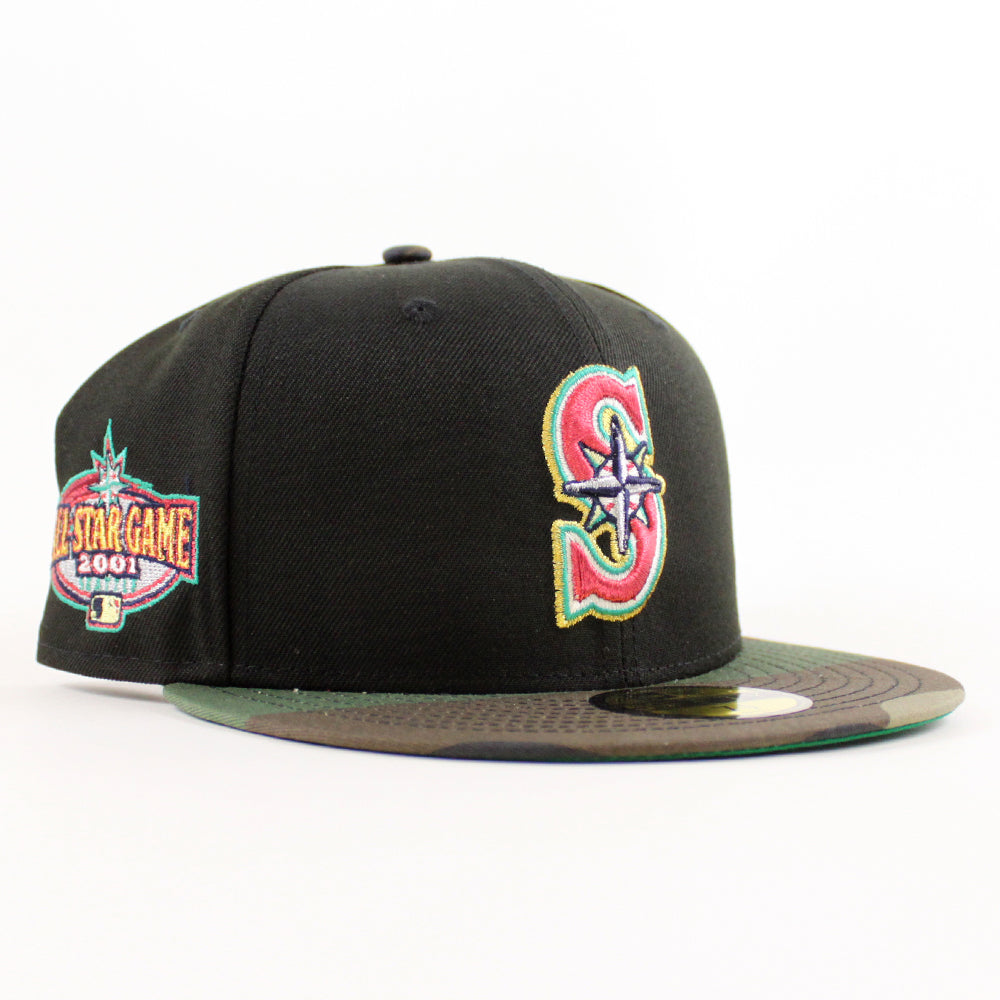 Seattle Mariners 2001 All Star Game New Era 59Fifty Fitted Hat in Black, Woodland Camo and Green Under Brim. 35