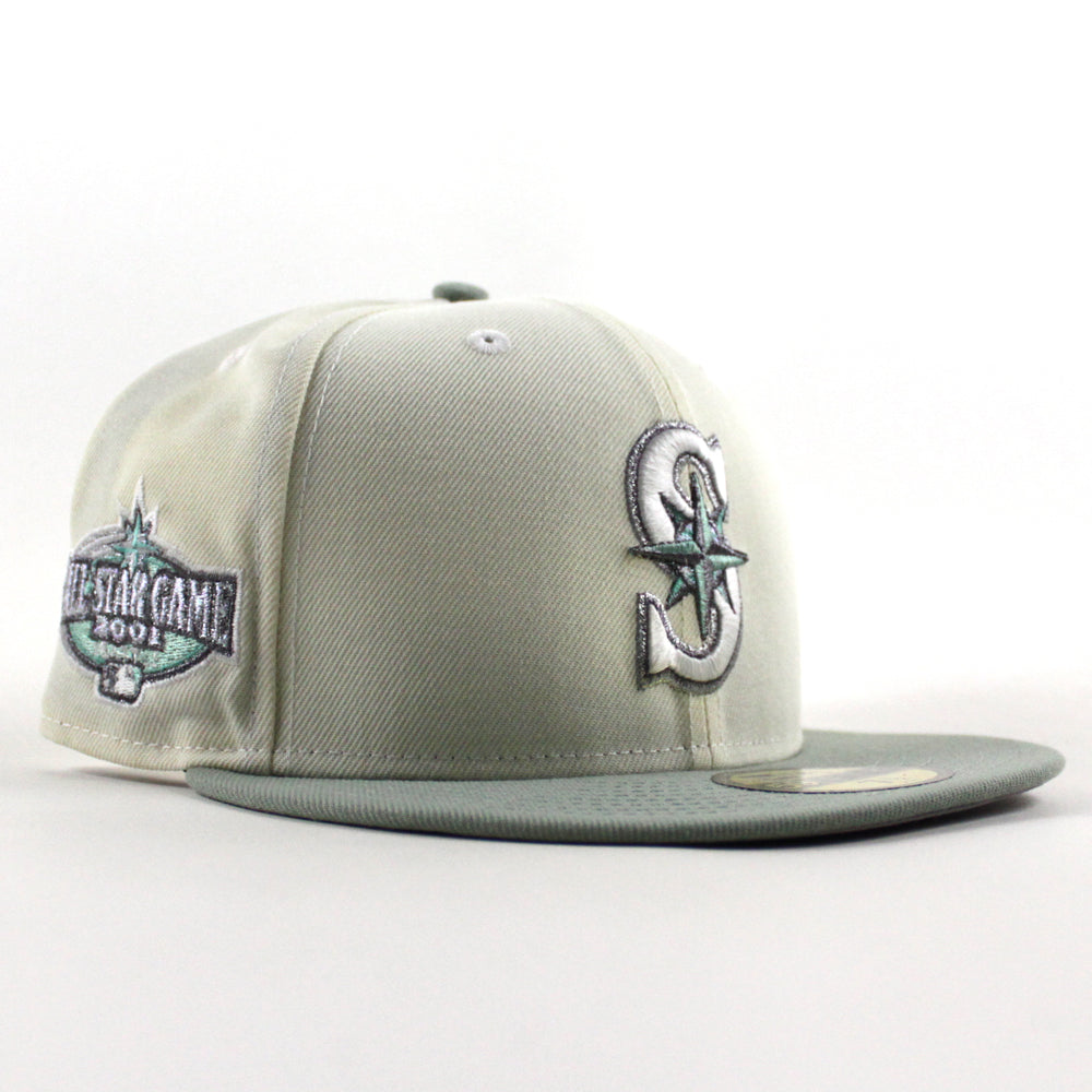 Seattle Mariners 2001 All Star Game New Era 59Fifty Fitted Hat (Chrome White Sea Glass Gray Under Brim)