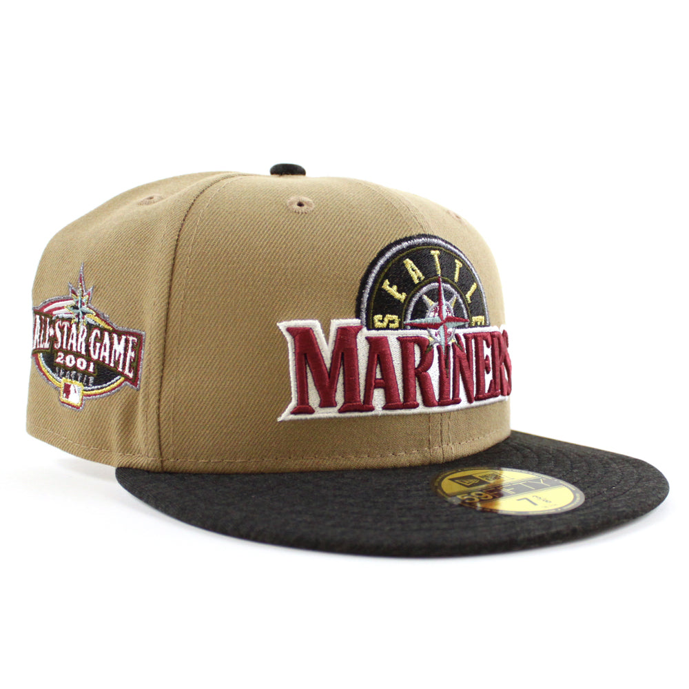 Seattle Mariners 2001 All Star Game New Era 59Fifty Fitted Hat (Khaki Black Gray Under Brim)