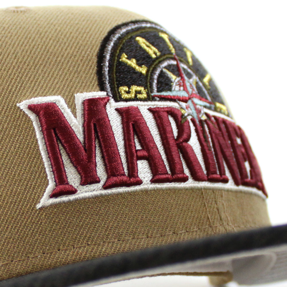 Seattle Mariners 2001 All Star Game New Era 59Fifty Fitted Hat in Khaki, Black and Gray Under Brim.