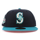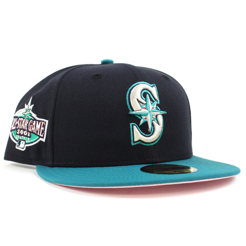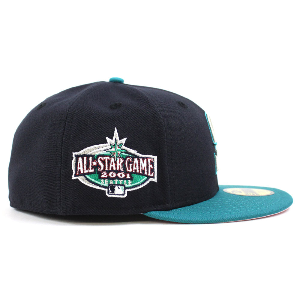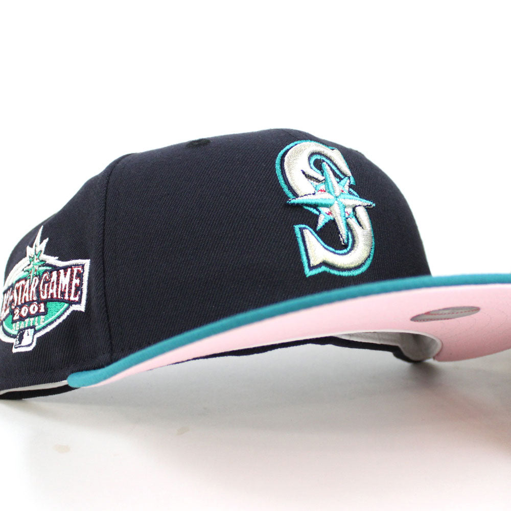 Seattle Mariners 2001 All Star Game New Era 59Fifty Fitted Hat (Navy Aqua PINK Under Brim)