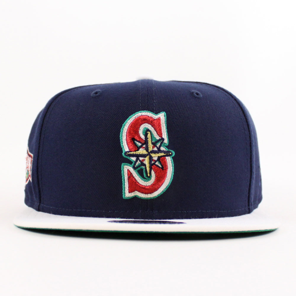 Seattle Mariners 2001 All Star Game New Era 59Fifty Fitted Hat in Oceanside Blue, Snow White and Green Under Brim. Inspired by Legendary Japanese Baseball Player with our own twisted to it.