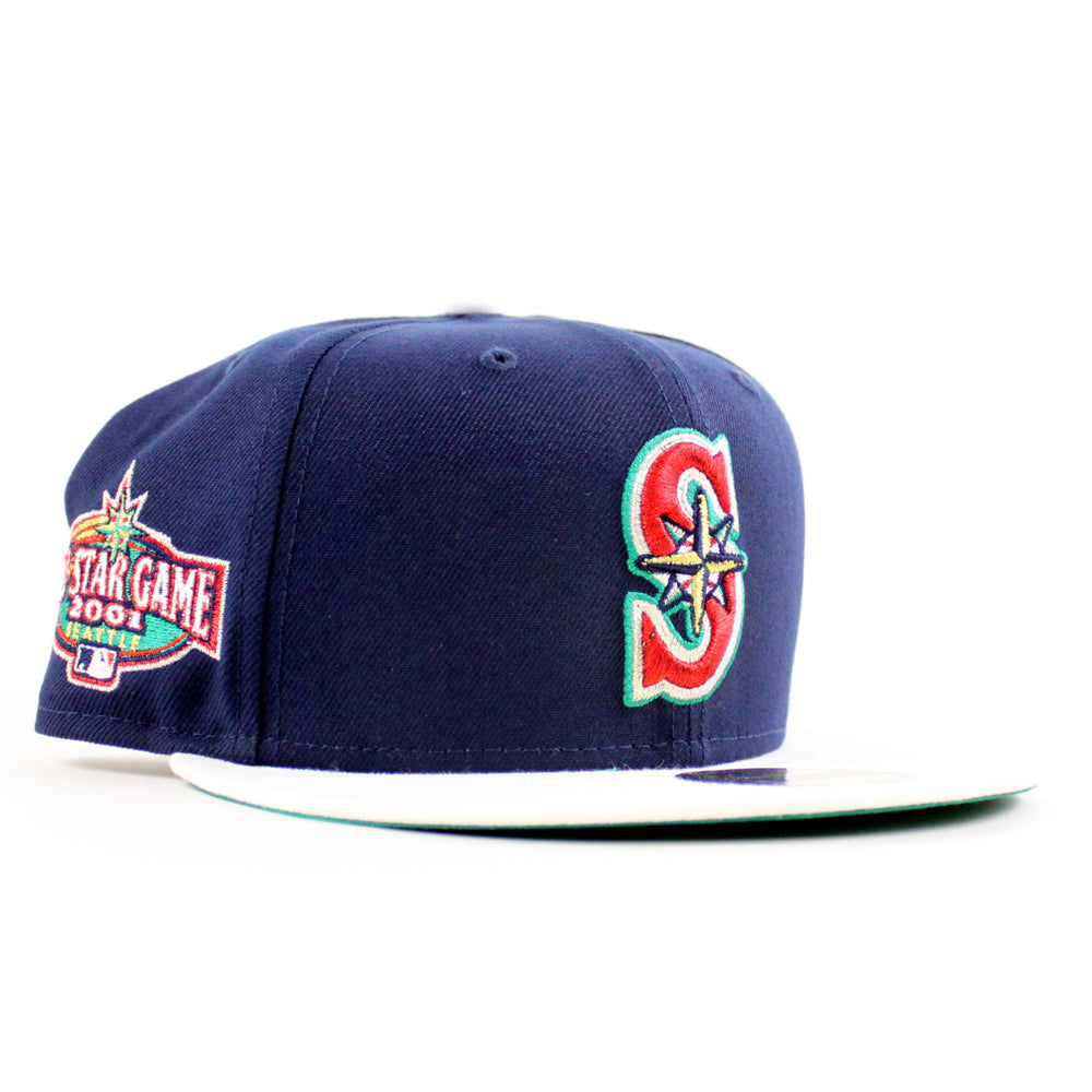 Seattle Mariners 2001 All Star Game New Era 59Fifty Fitted Hat (Oceanside Blue Snow White Green Under Brim)