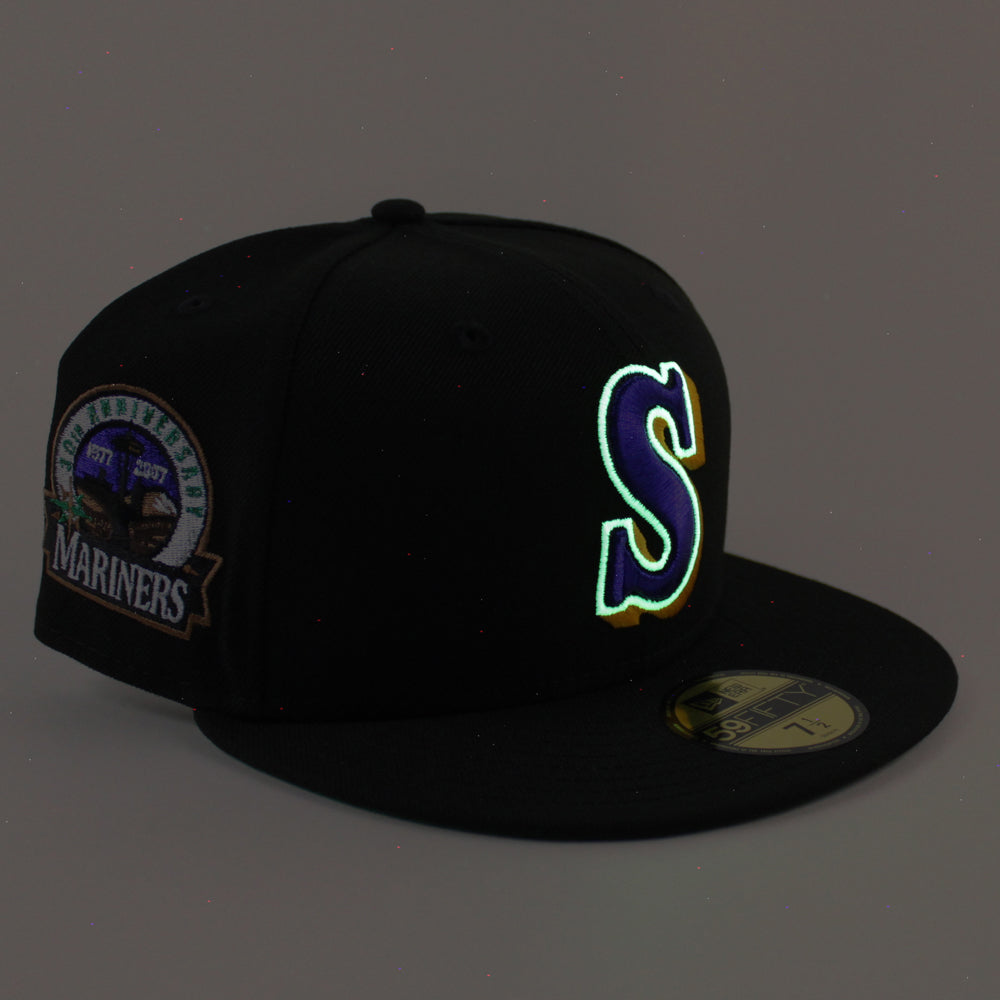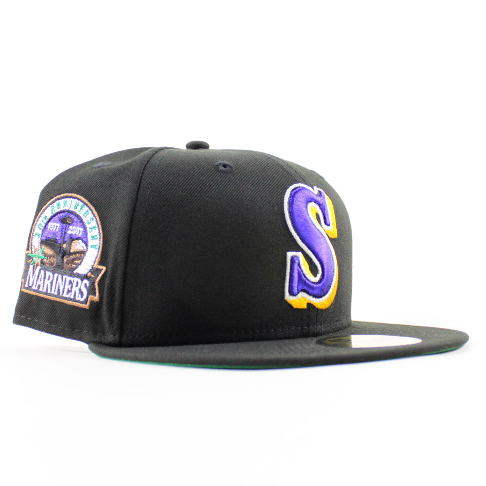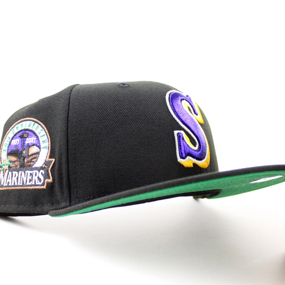 Seattle Mariners 30TH Anniversary New Era 59Fifty Fitted Hat in Black and Green Under Brim.