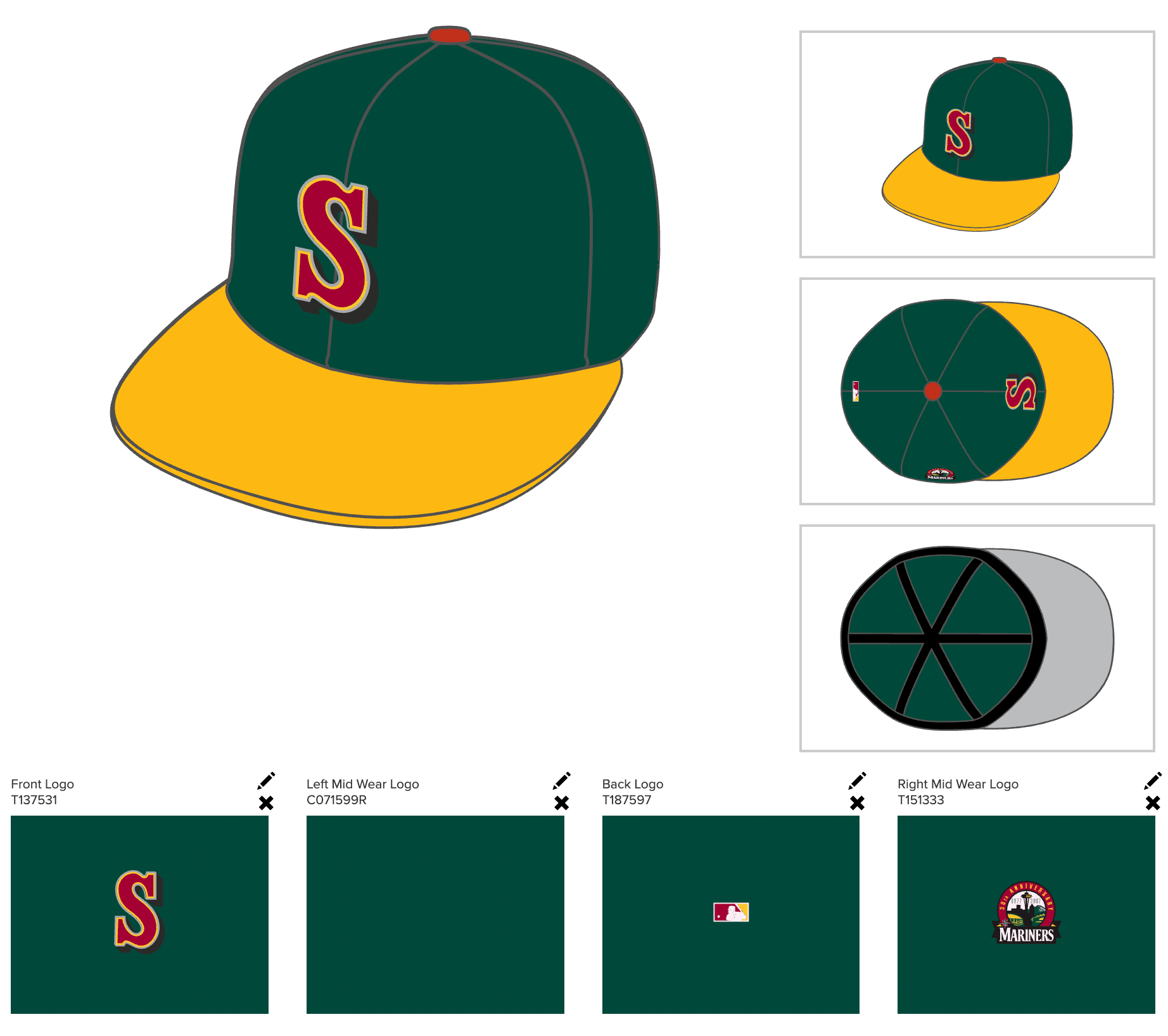 Seattle Mariners 30th Anniversary New Era 59Fifty Fitted Hat in Dark Green, Yellow and Gray Under Brim.