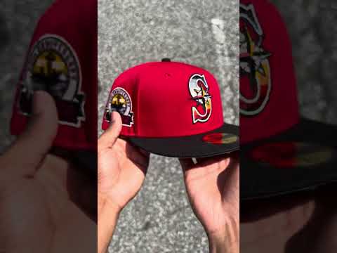 Seattle Mariners 30th Anniversary New Era 59Fifty Fitted Hat in Scarlet Red, Black and Gray Under Brim. 18