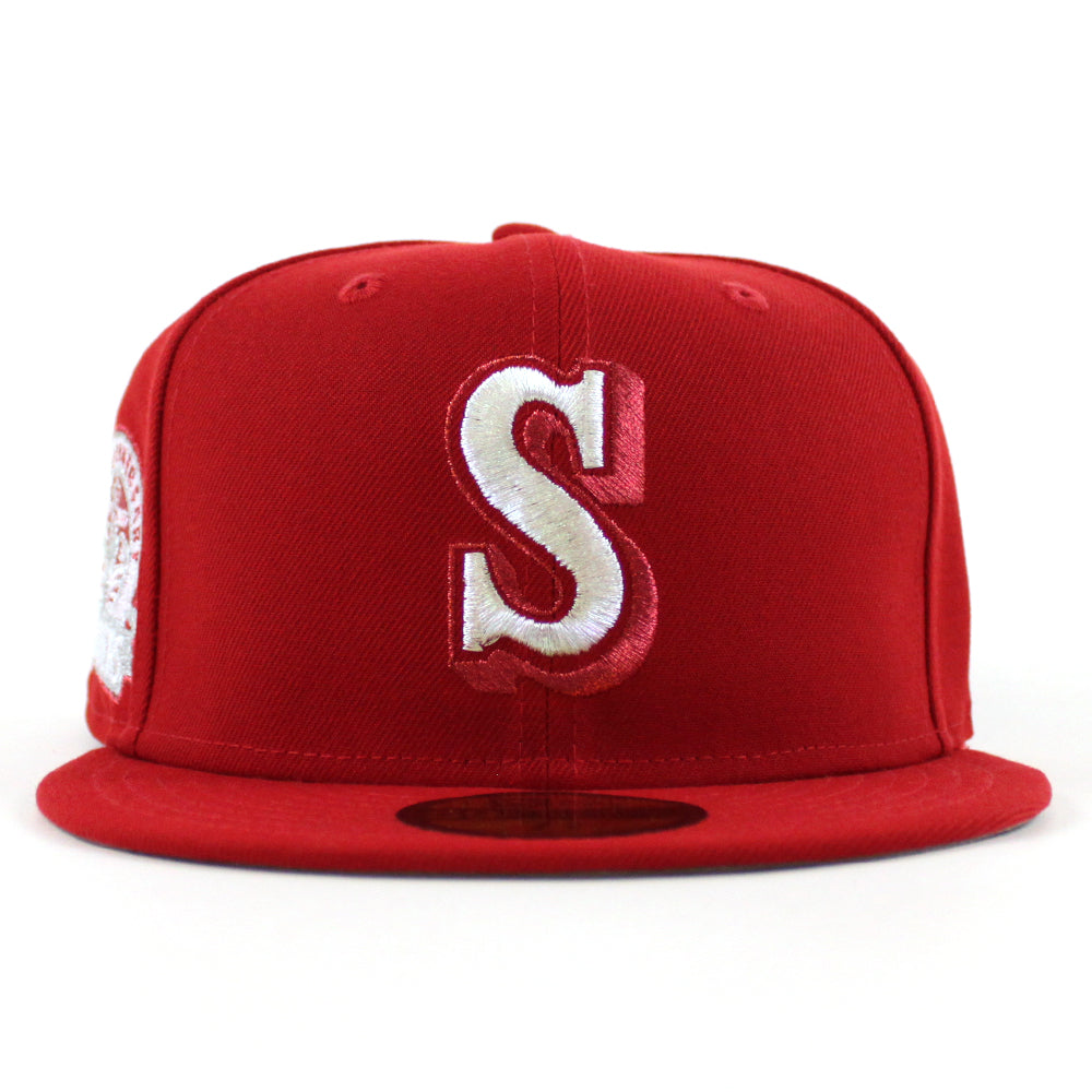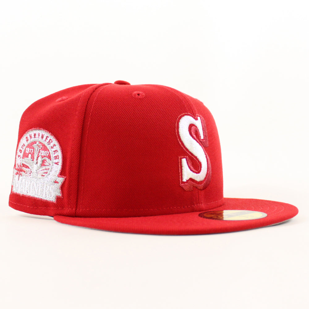 Seattle Mariners 30th Anniversary New Era 59Fifty Fitted Hat in Scarlet Red and Gray Under Brim.Β