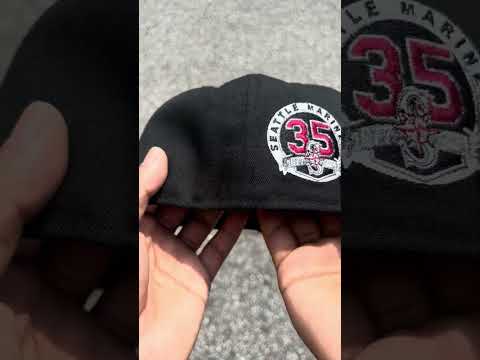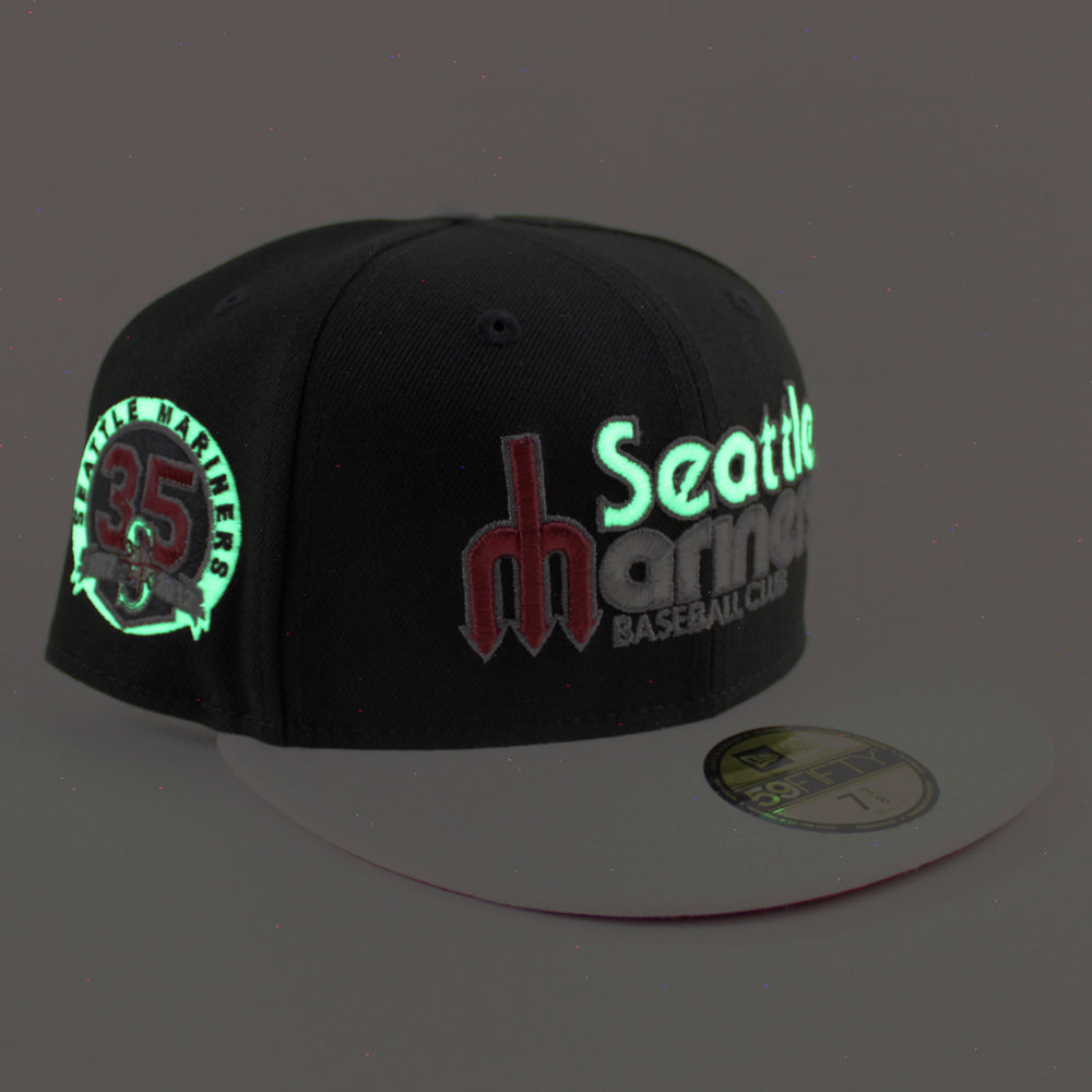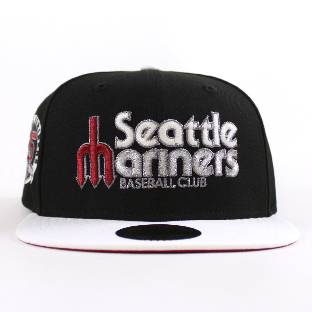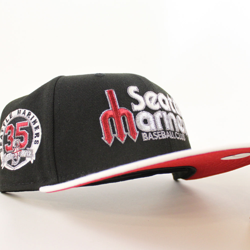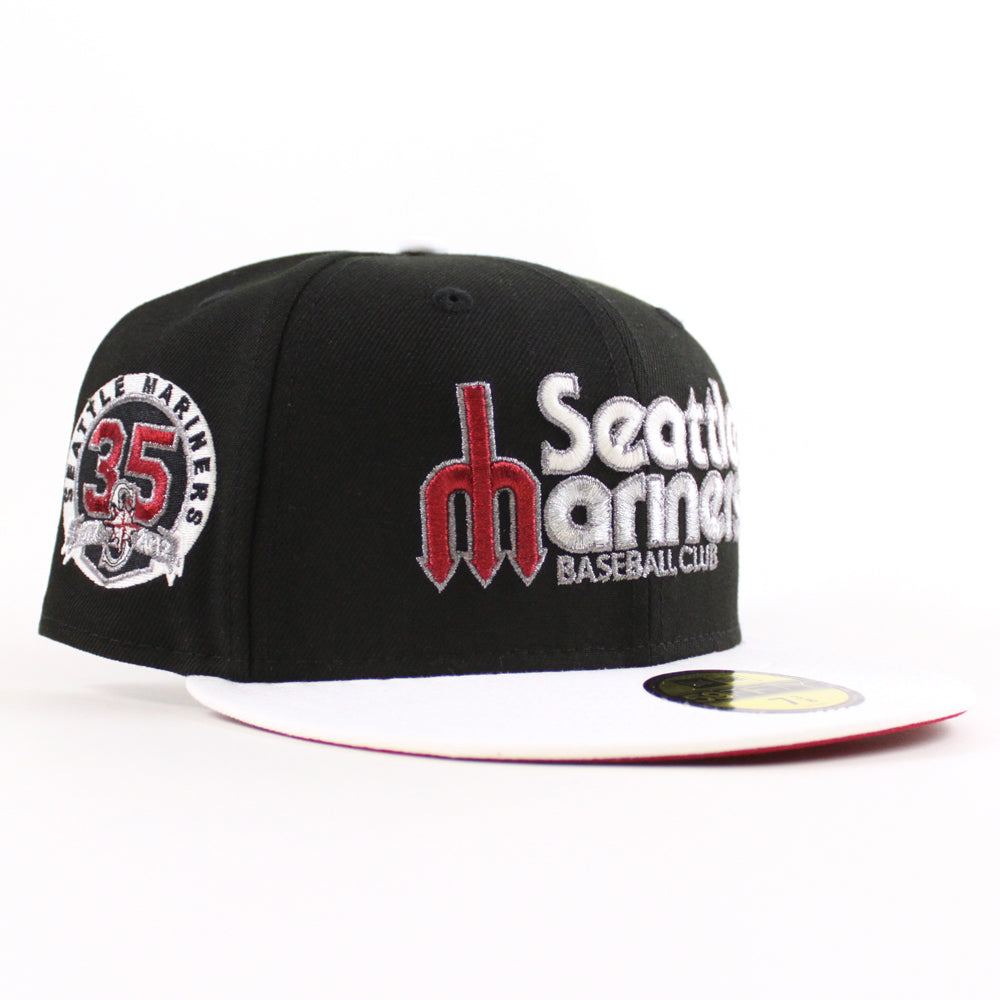 Seattle Mariners 35th Anniversary New Era 59Fifty Fitted Hat in Black, White and Red Under Brim.