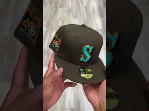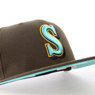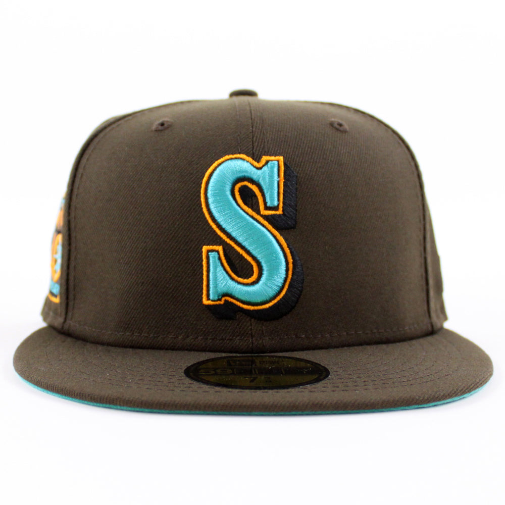 Seattle Mariners 40TH Anniversary New Era 59Fifty Fitted Hat in Walnut and Teal Under Brim.