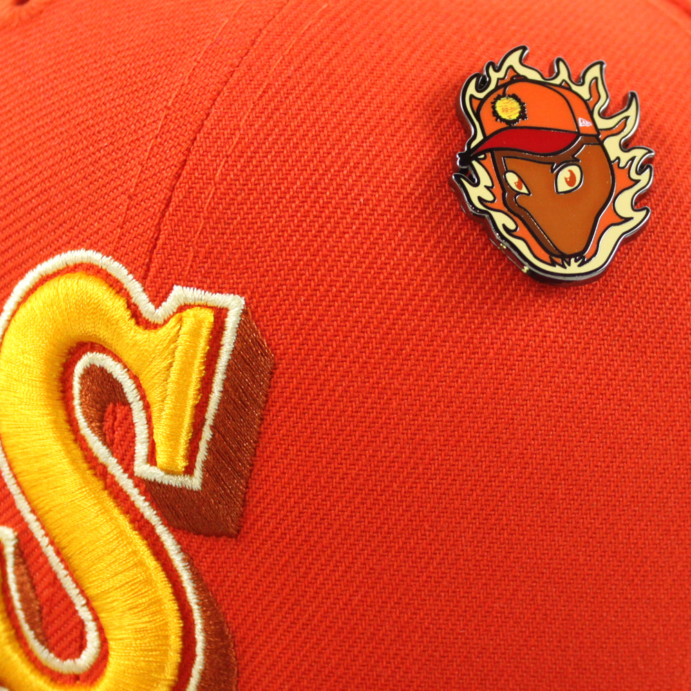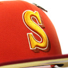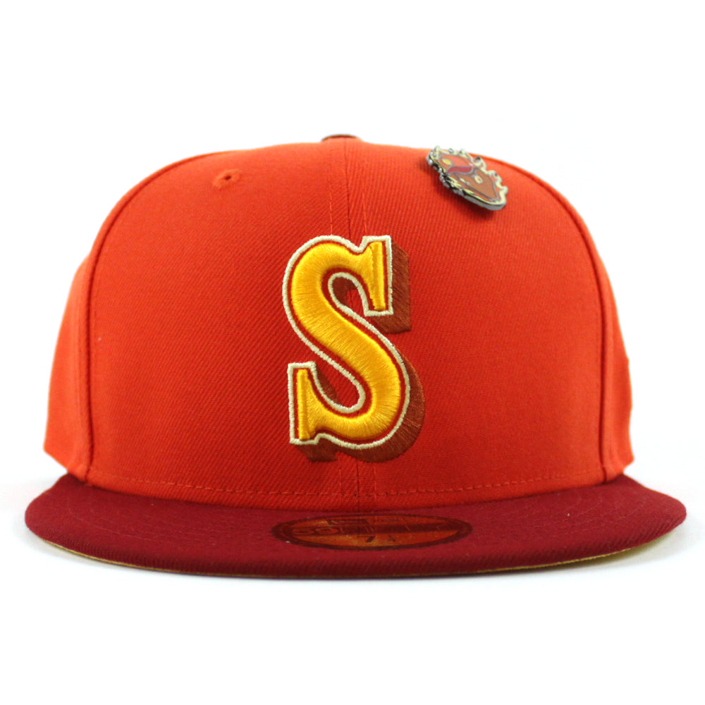 Seattle Mariners OUTERSPACE Sun New Era 59Fifty Fitted Hat in Orange, Maroon and Yellow Under Brim. 17