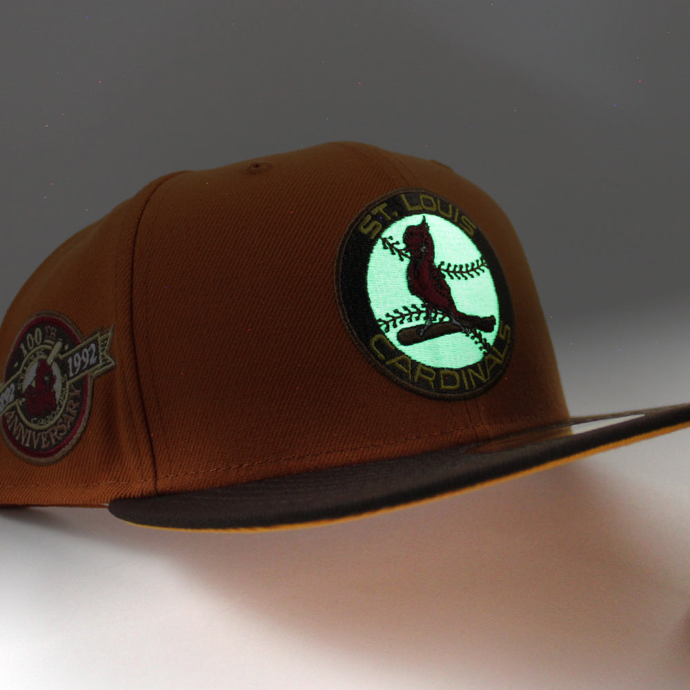 St. Louis Cardinals 100 ANN New Era 59Fifty Fitted Hat (Glow in the Dark Orange Burnt Wood Gold Under Brim)