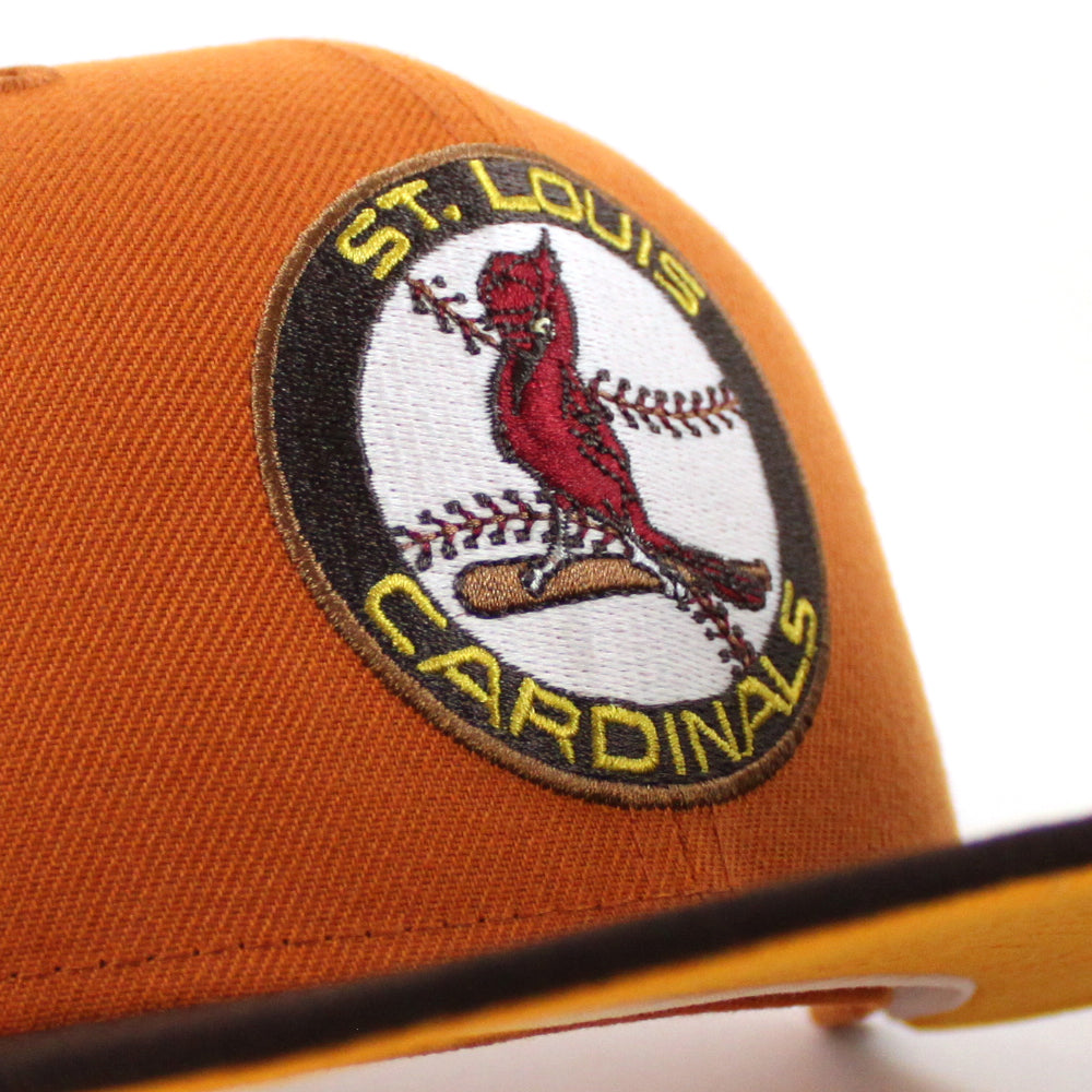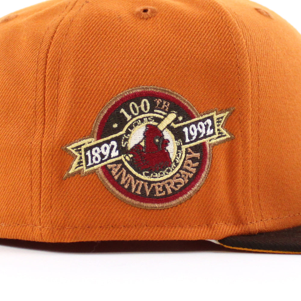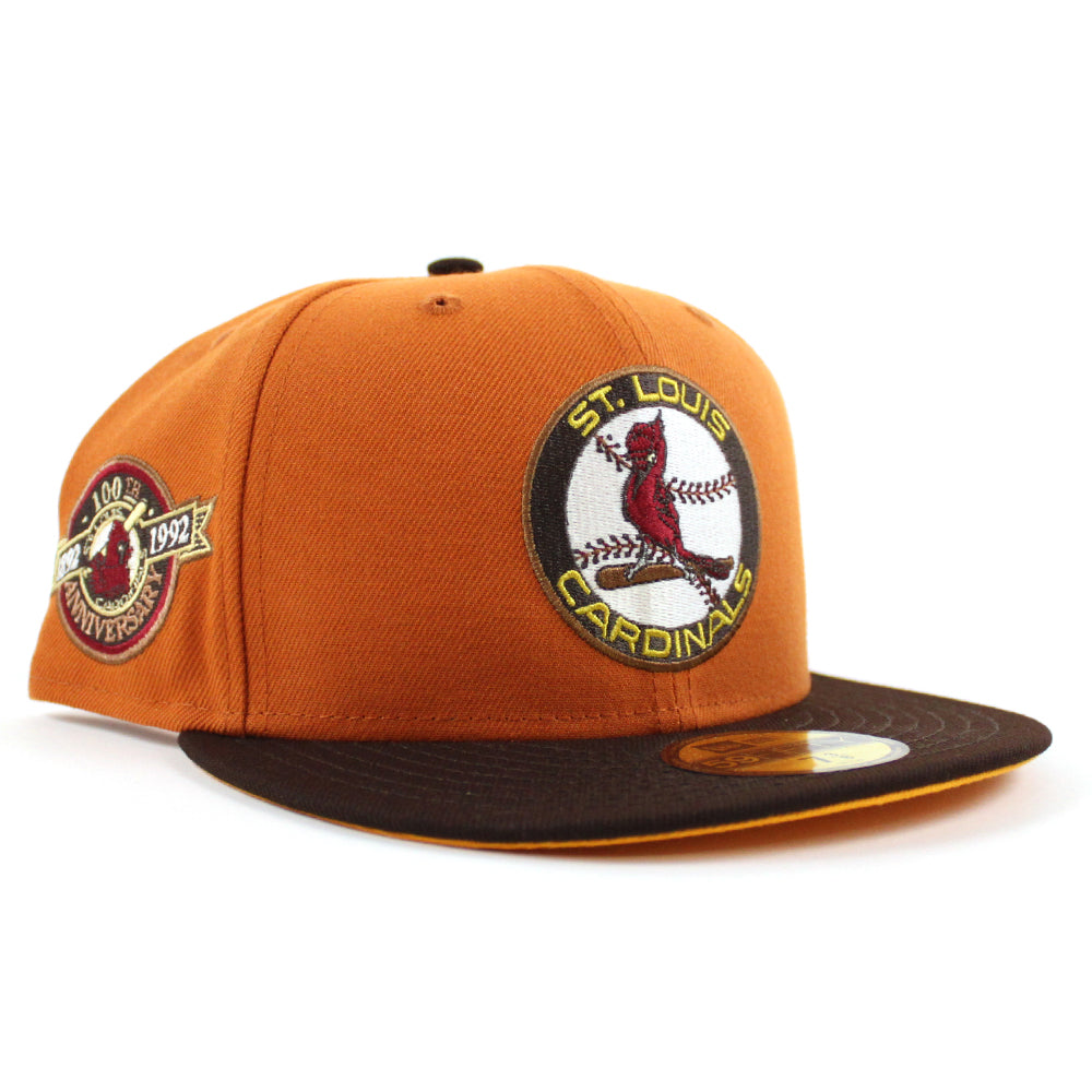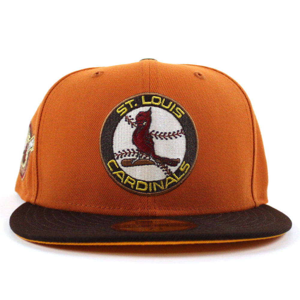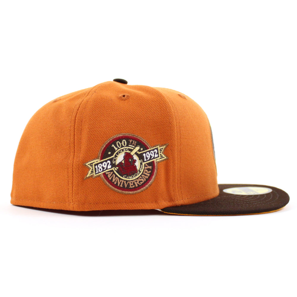 St. Louis Cardinals 100 ANN Series New Era 59Fifty Fitted Hat in Orange, Burnt Wood, and Gold Under Brim.