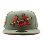 St Louis Cardinals 1934 World Series New Era 59Fifty Fitted Hat in Olive and Red Under Brim.