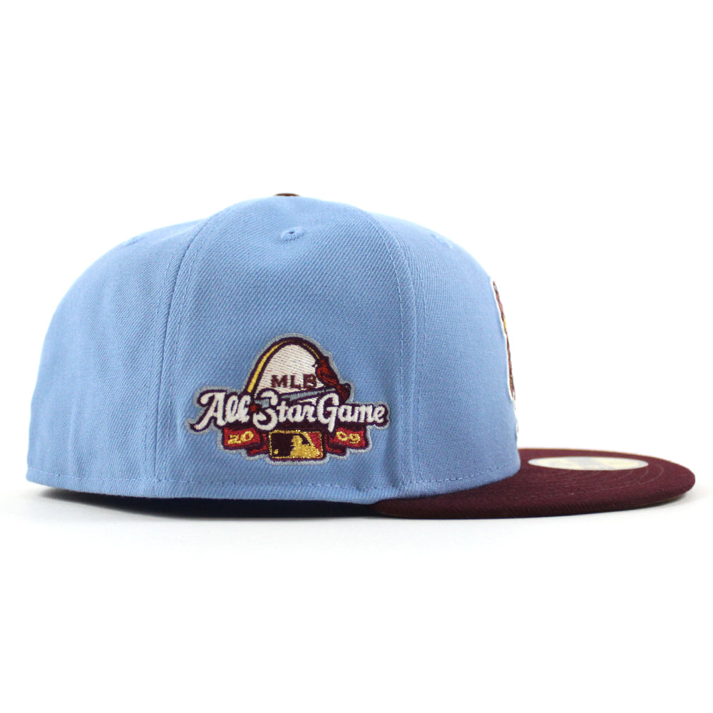 St. Louis Cardinals 2009 All Star Game New Era 59Fifty Fitted Hat (Light Blue Maroon Khaki Under Brim)