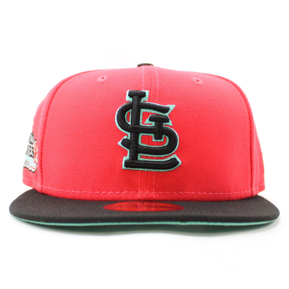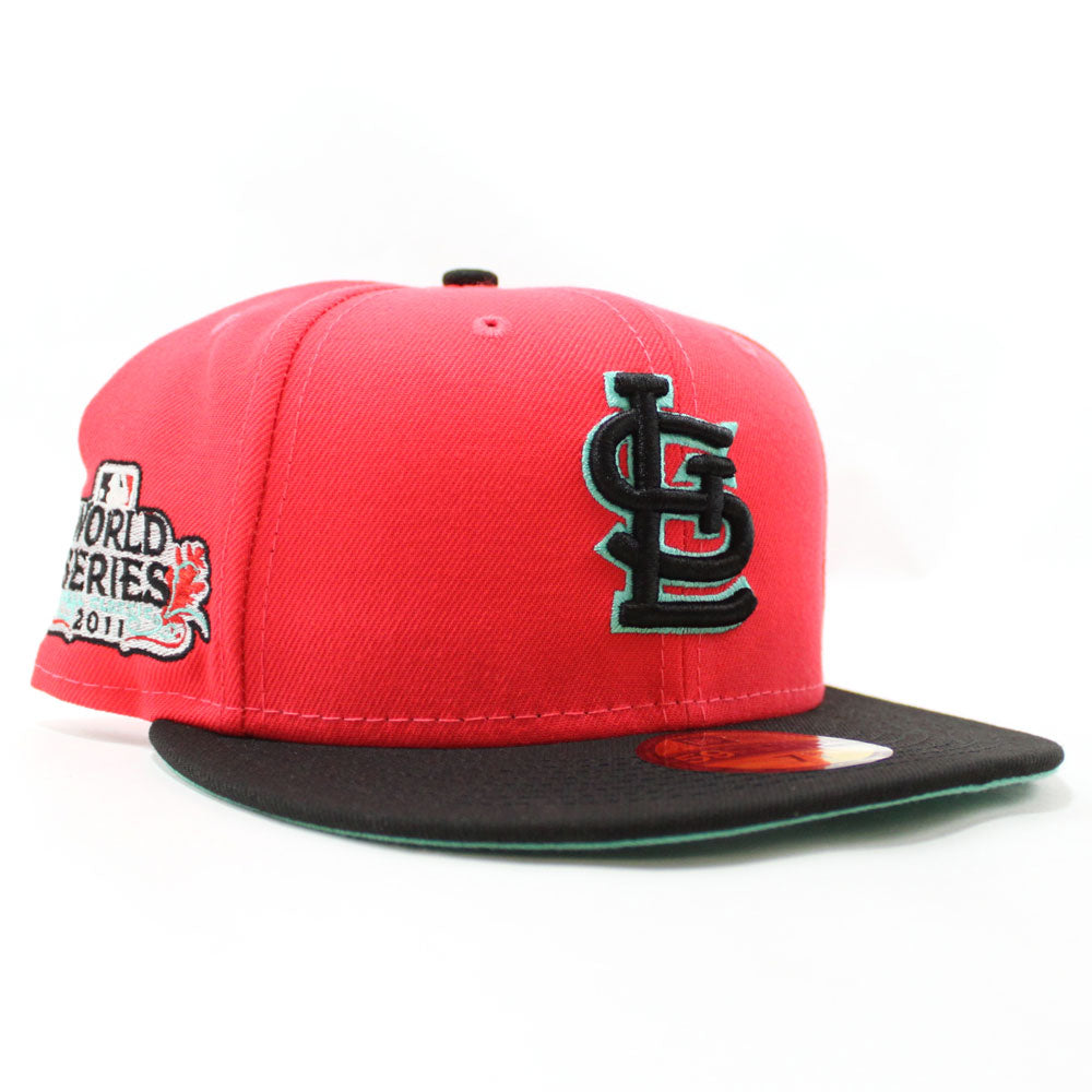 St Louis Cardinals 2011 World Series New Era 59Fifty Fitted Hat in Lava, Black and Mint Under Brim.