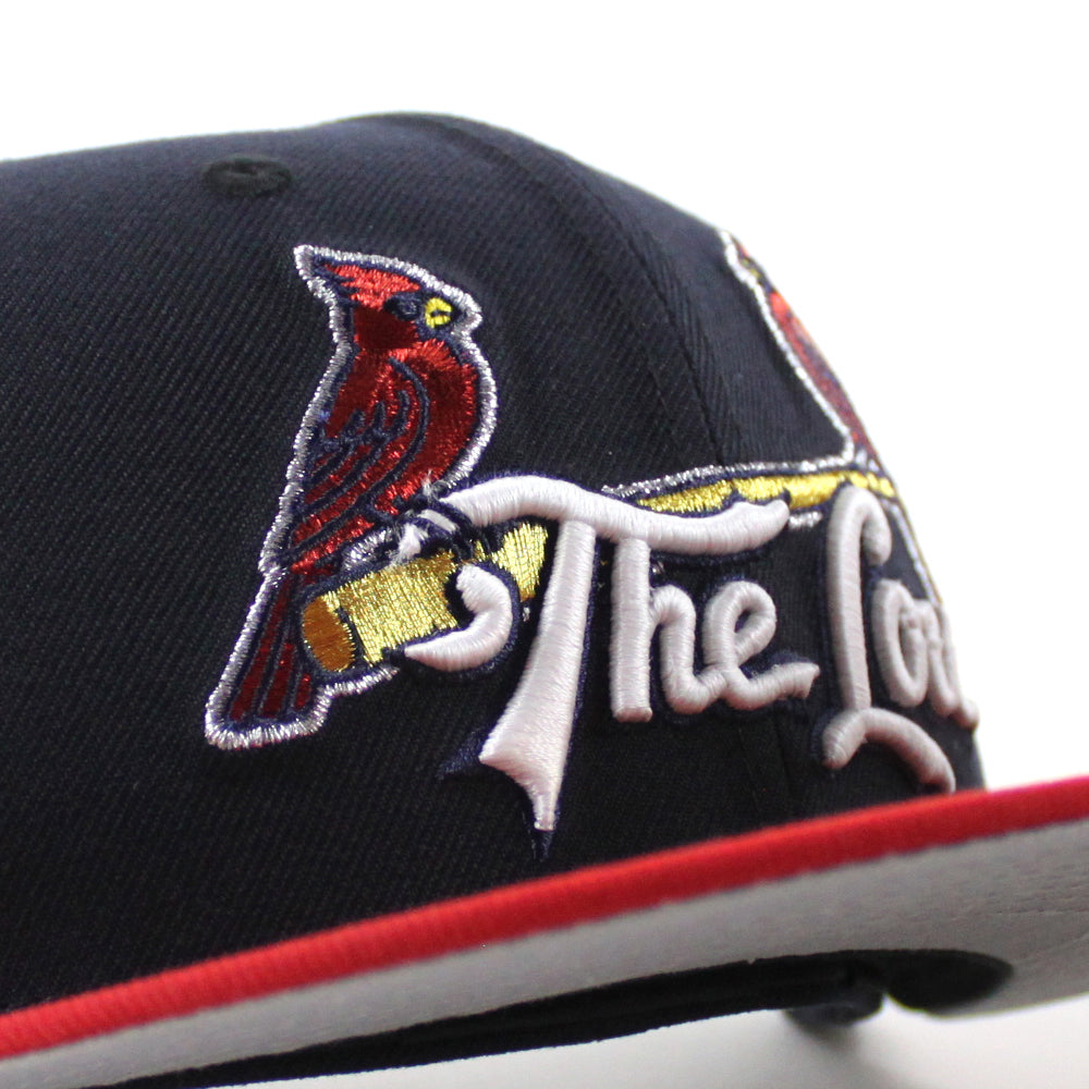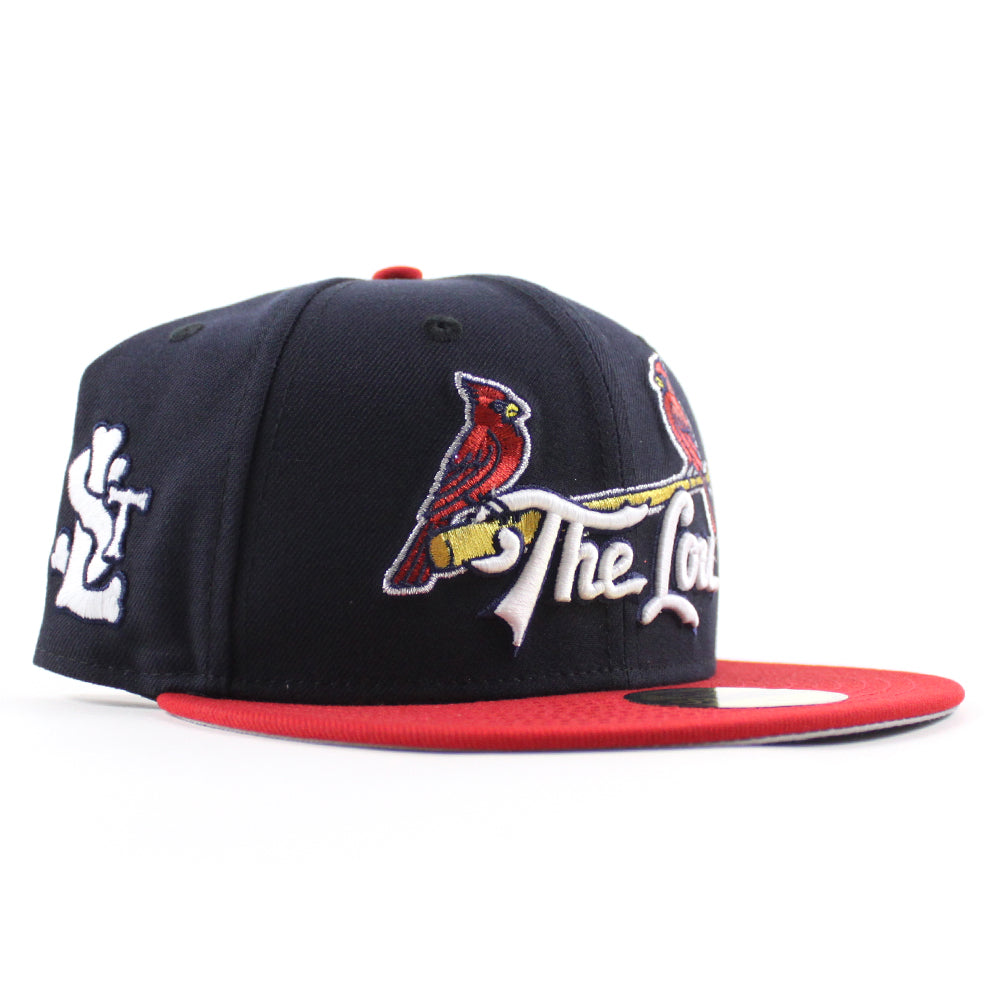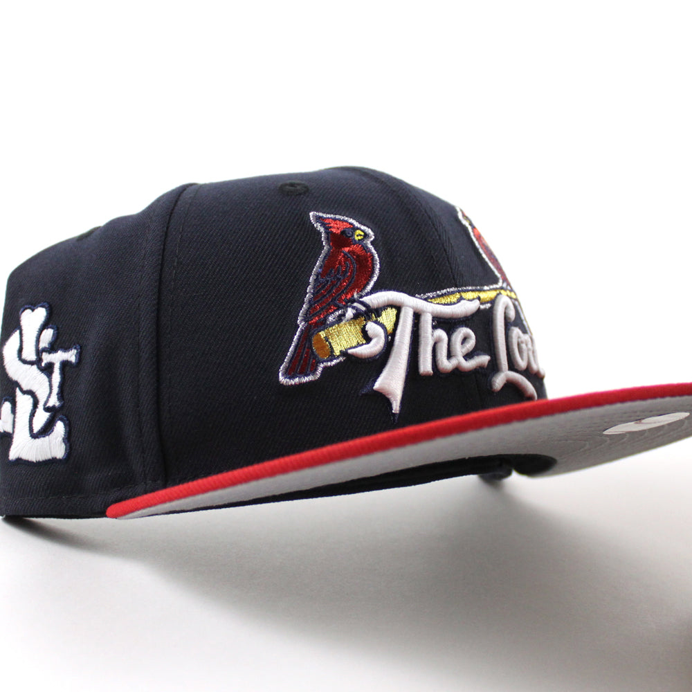 St. Louis Cardinals The Lou STL Patch New Era 59Fifty Fitted Hat (Navy Scarlet Red Gray Under Brim)