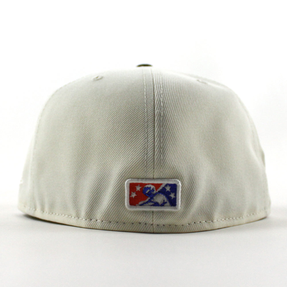 Syracuse Mets Inaugural Season New Era 59Fifty Fitted Hat in Chrome White, Black and Green Under Brim.