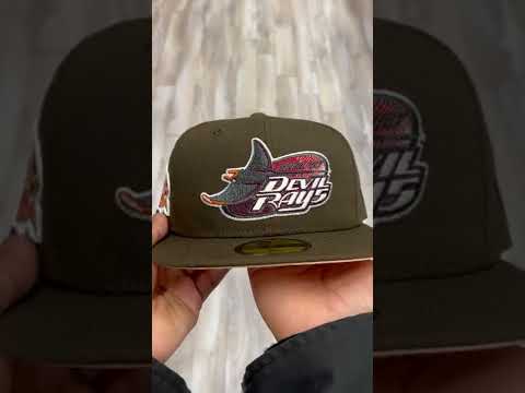 Tampa Bay Devil Rays 10th Season New Era 59Fifty Fitted Hat in Walnut & Peach Under Brim.