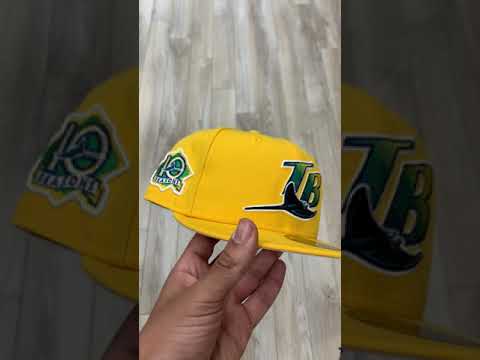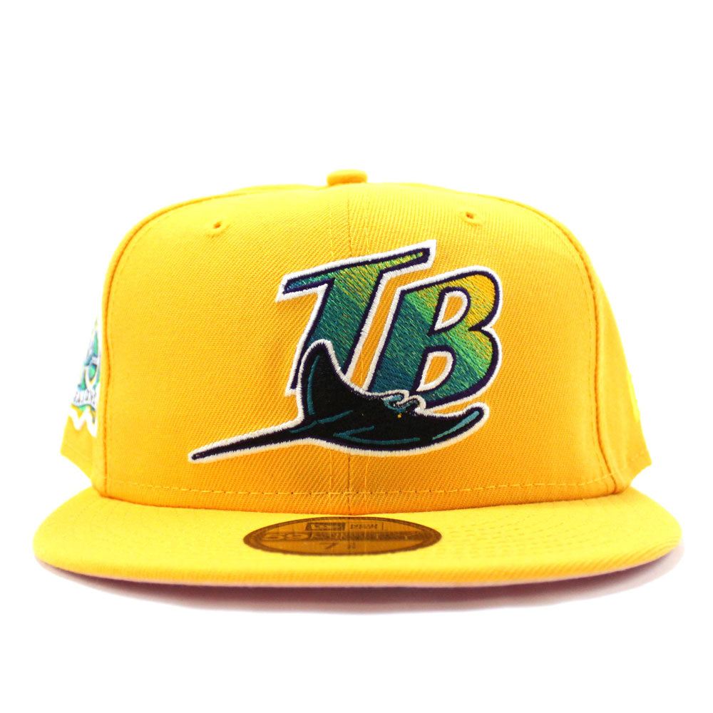 Tampa Bay Devil Rays 10th Season New Era 59Fifty Fitted Hat in Yellow & Pink Under Brim.