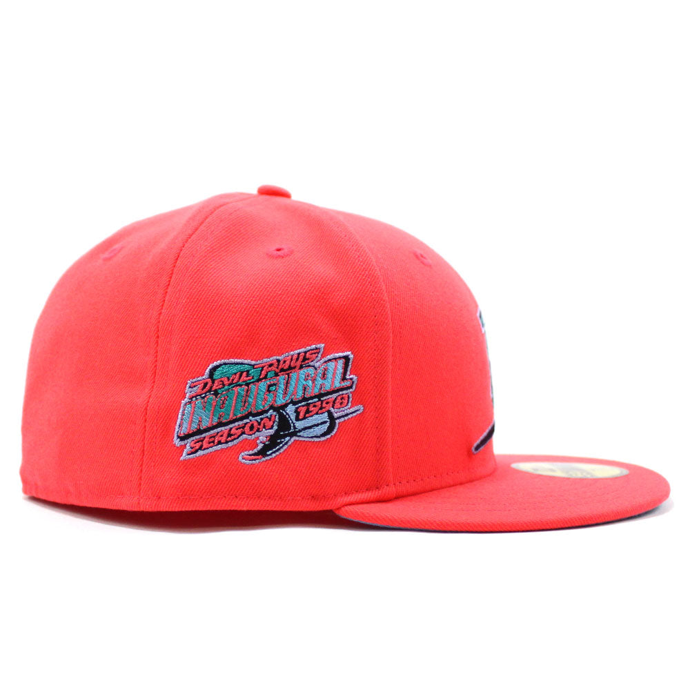 Tampa Bay Devil Rays 1998 Inaugural Season New Era 59Fifty Fitted Hat in Lava Red & Sky Blue Under Brim.