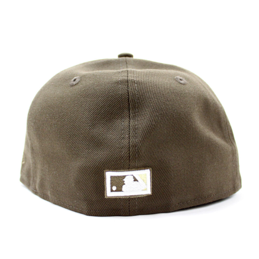Tampa Bay Devil Rays 1998 Inaugural Season New Era 59Fifty Fitted Hat in Walnut & Soft Yellow Under Brim.