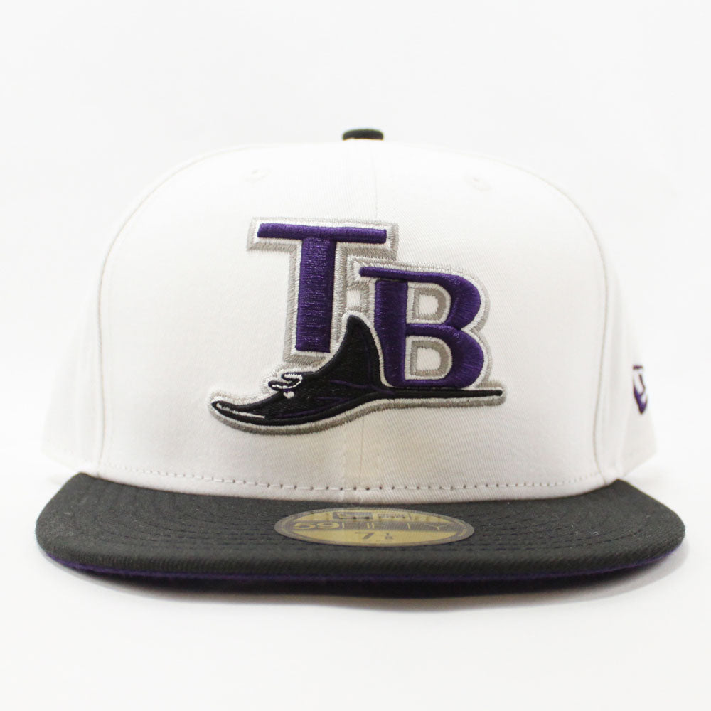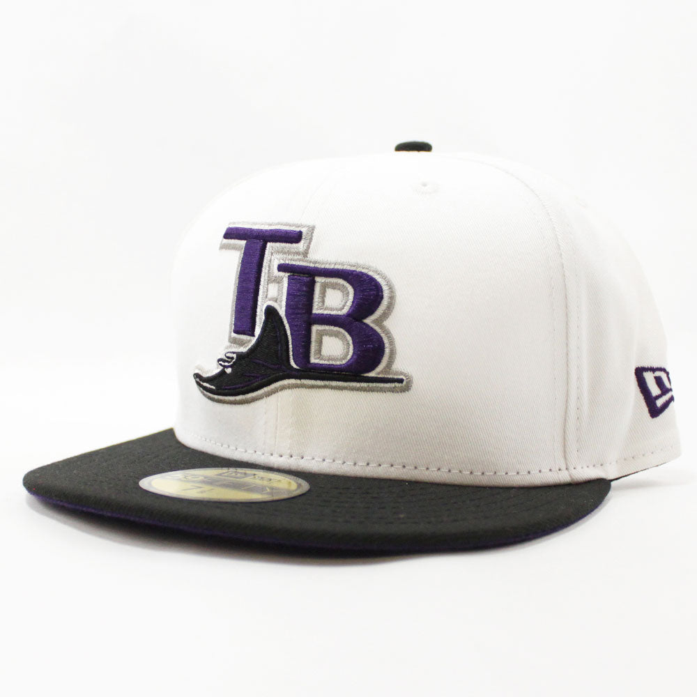 Tampa Bay Devil Rays New Era 59Fifty Fitted Hat (WHITE BLACK Purple Under Brim)