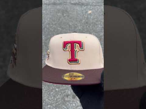 Texas Rangers 1995 All Star Game New Era 59Fifty Fitted Cap in Camel, Burnt Wood and Cardinal under brim.