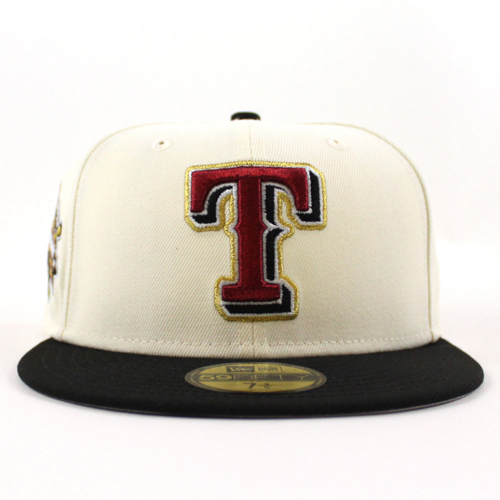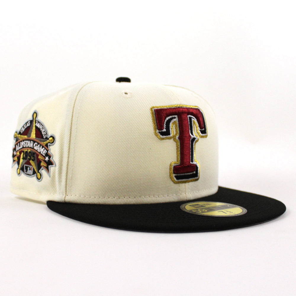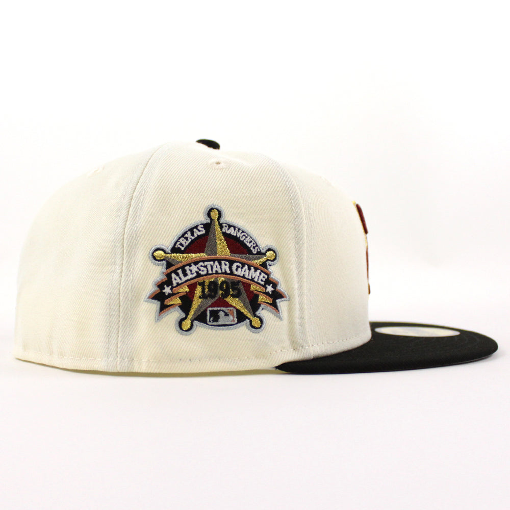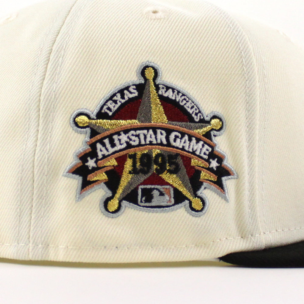 Texas Rangers 1995 All Star Game New Era 59Fifty Fitted Cap in Chrome, Black and Gray under brim.