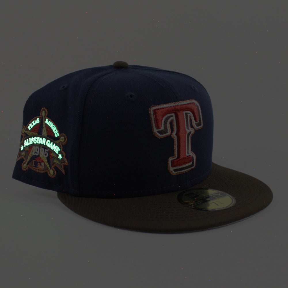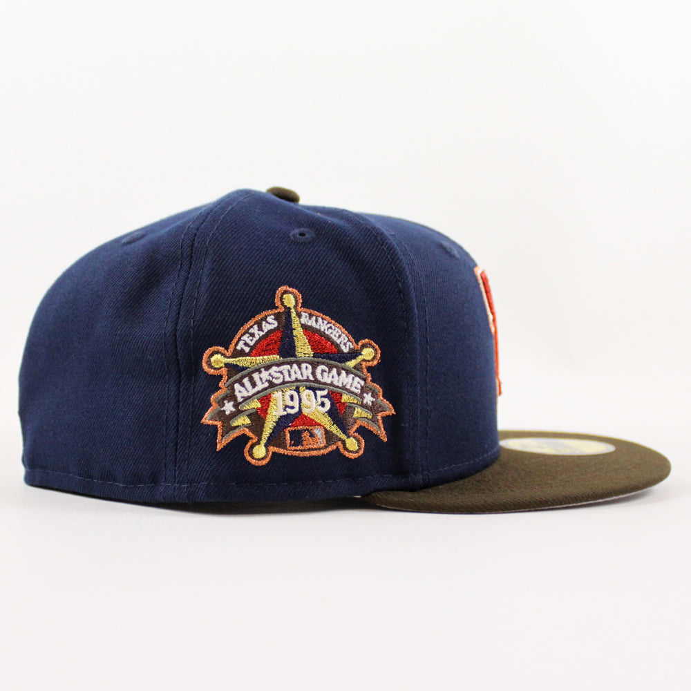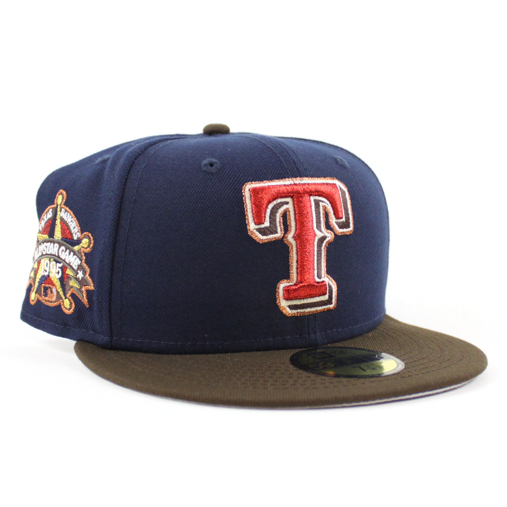 Texas Rangers 1995 All Star Gamey New Era 59Fifty Fitted Cap in Oceanside, Walnut and Gray under brim.