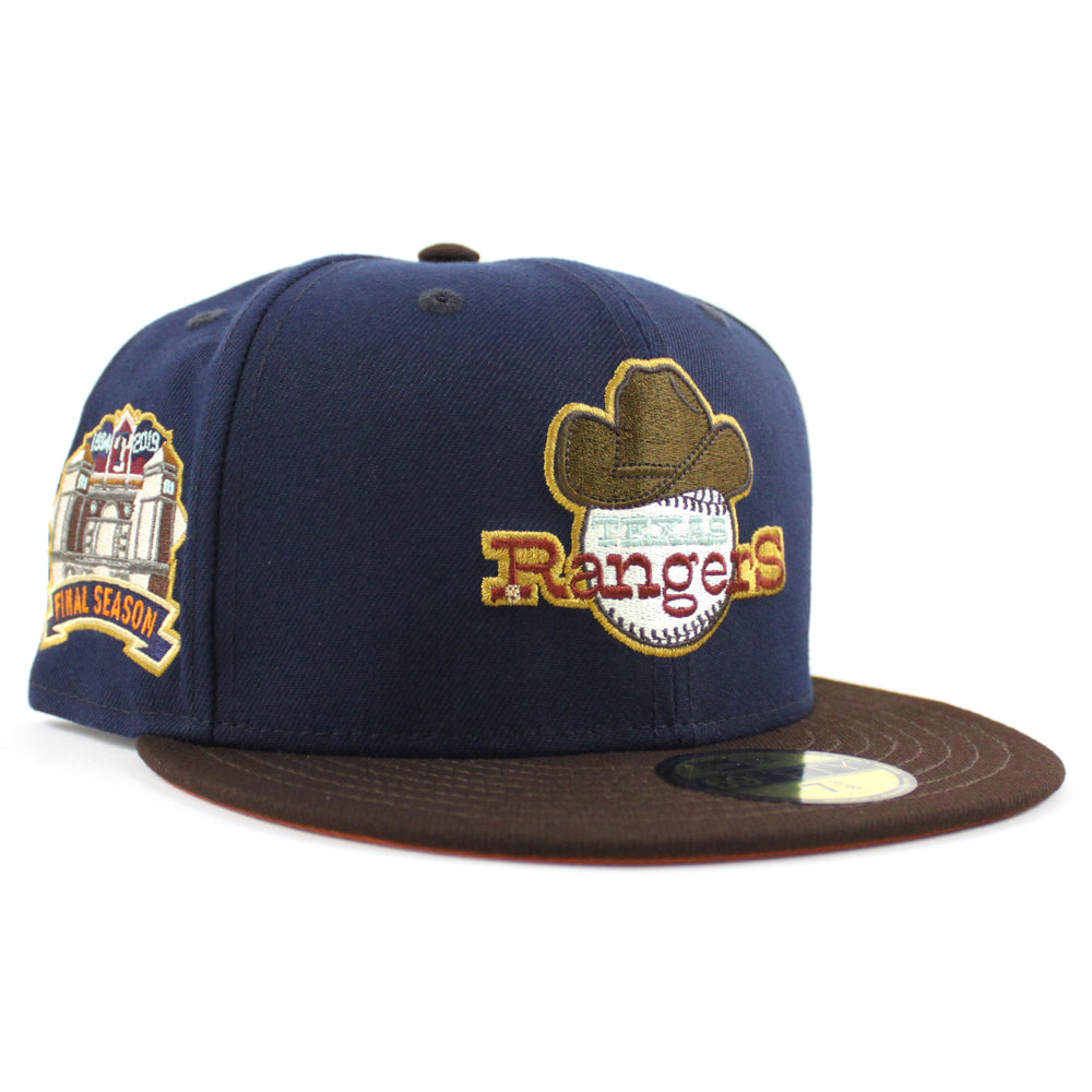 Texas Rangers FINAL SEASON New Era 59Fifty Fitted Hat (OCEANSIDE BURNT WOOD RUST ORANGE Under Brim)