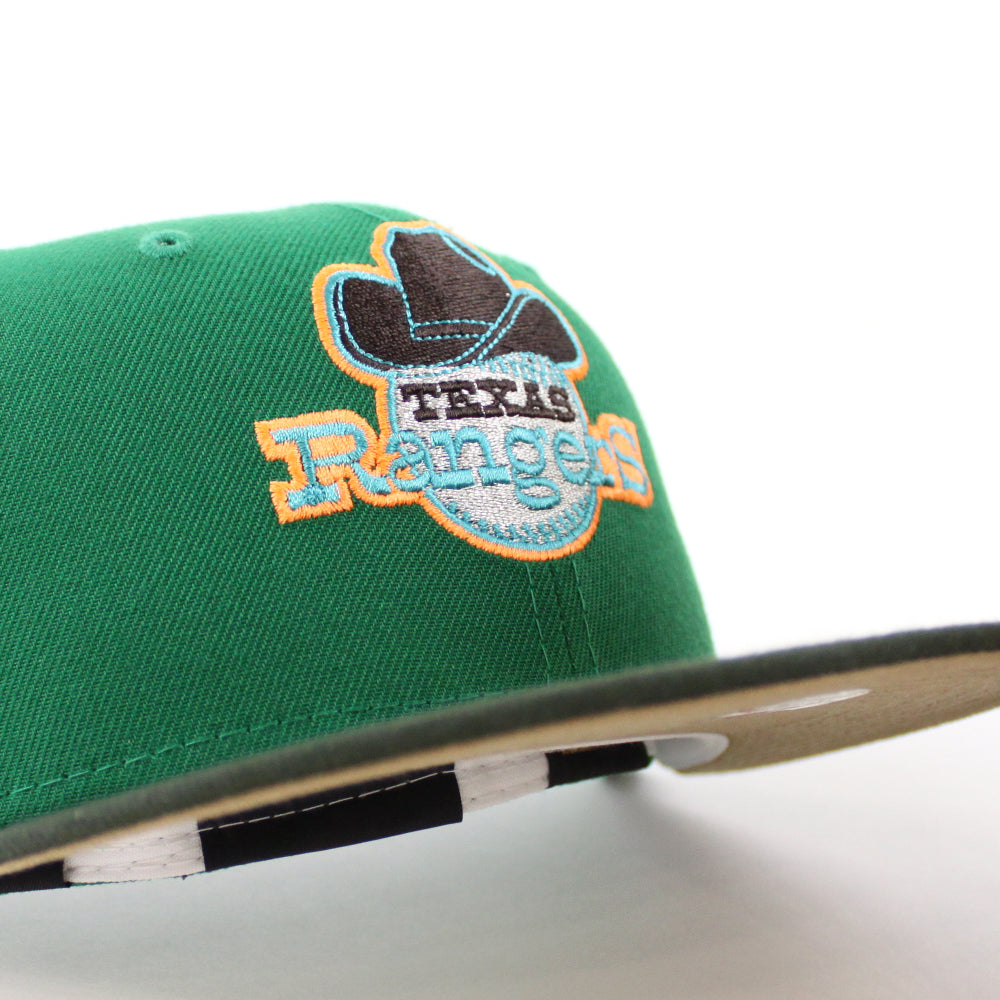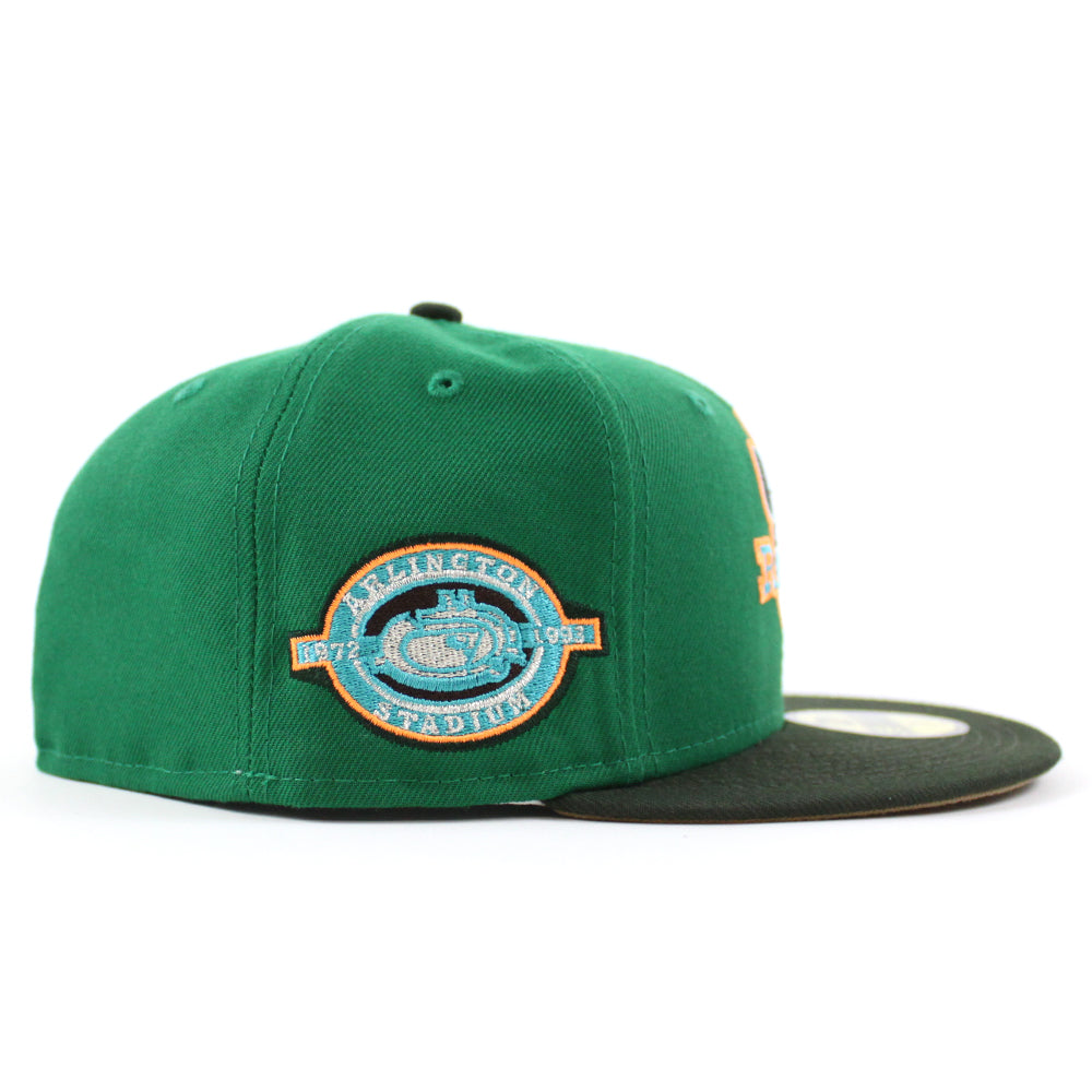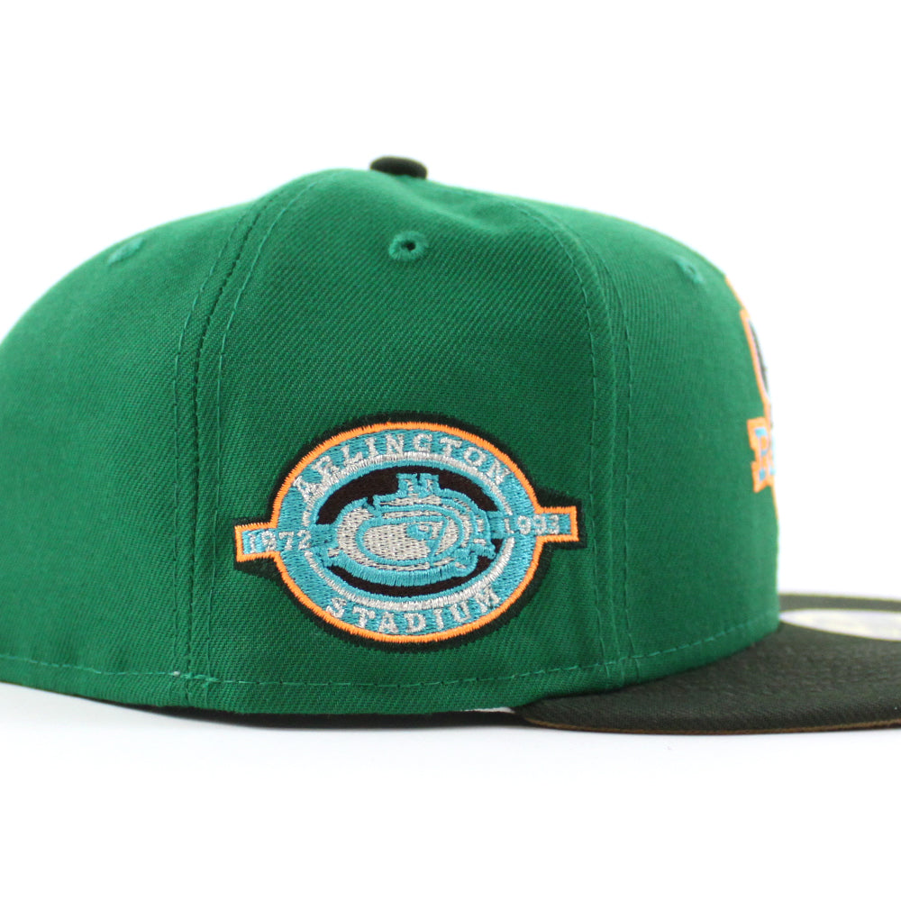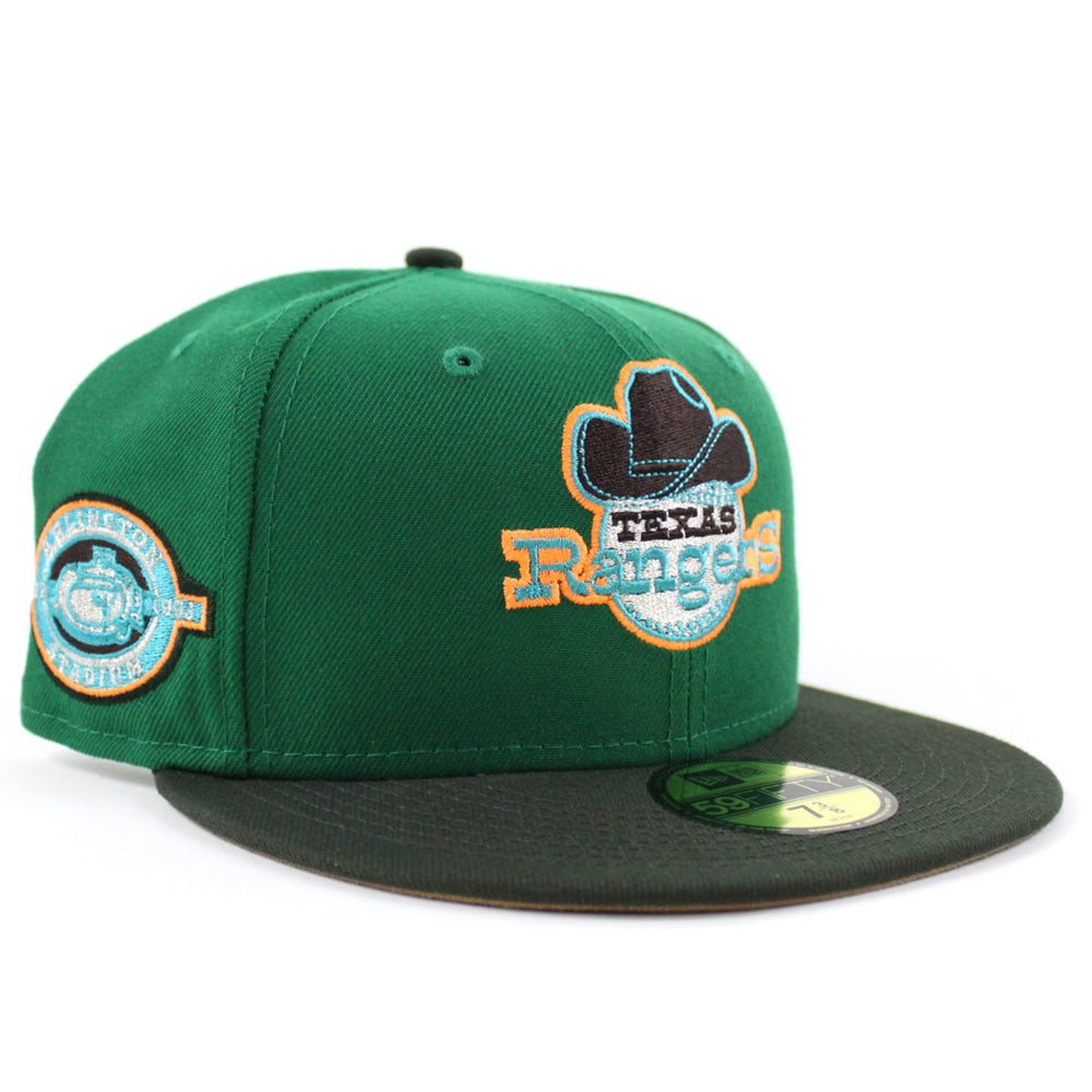Texas Rangers ARLINGTON STADIUM New Era 59Fifty Fitted Hat in Kelly Green, Seaweed and Khaki under brim.