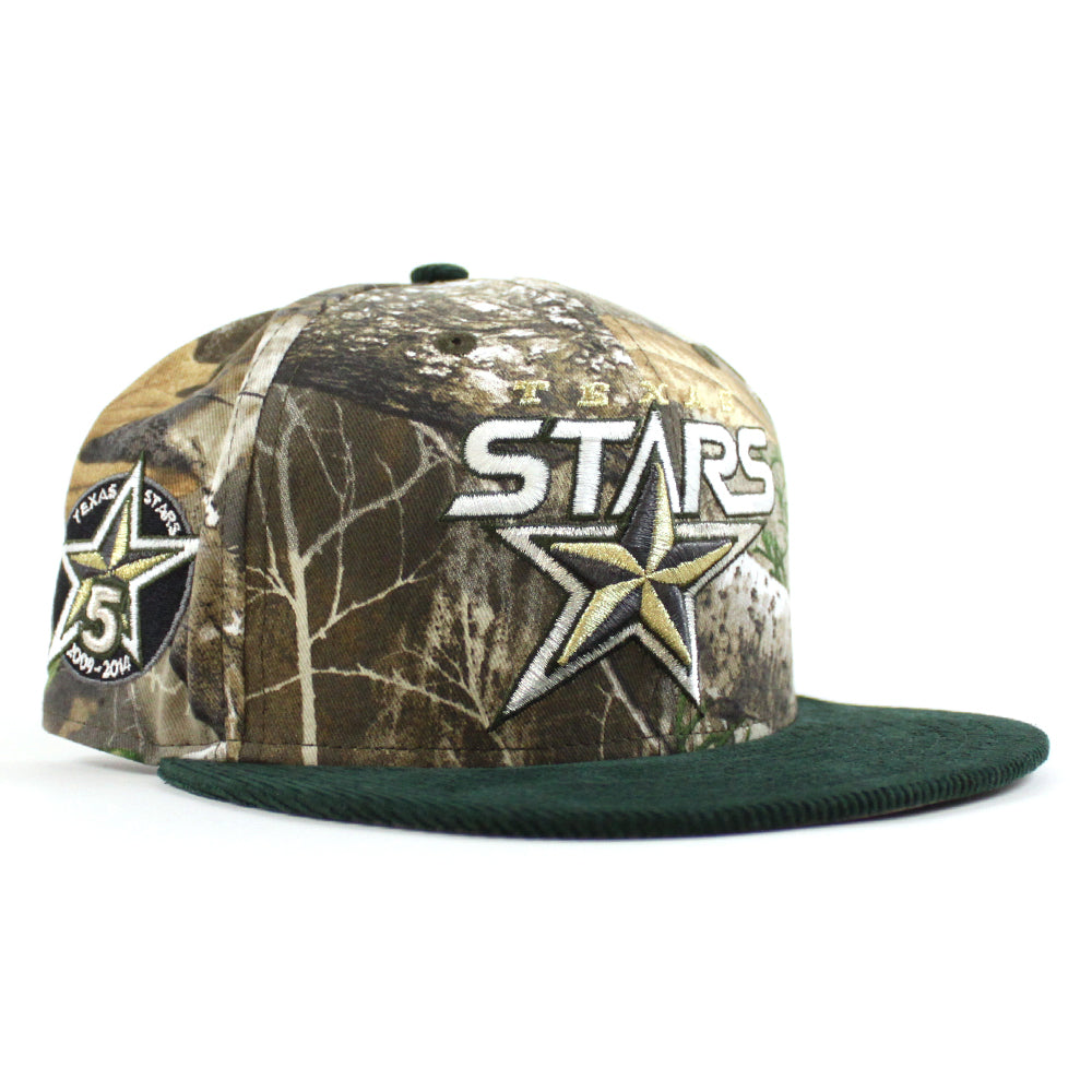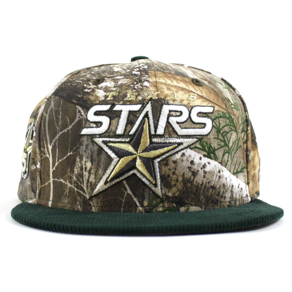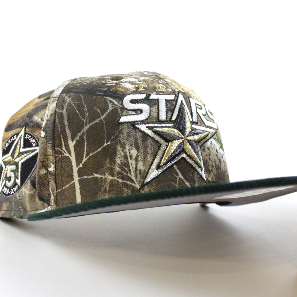 TEXAS STARS AMERICAN HOCKEY LEAGUE 5TH Anniversary New Era 59Fifty Fitted Hat in RealTree Camo, Green Corduroy and Gray Under Brim.