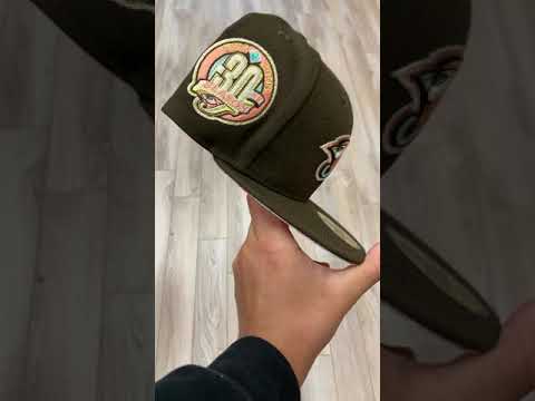 Toronto Blue Jays 30TH Anniversary New Era 59Fifty Fitted Hat in Dark Brown and Floral Under Brim. - Allergy Pack