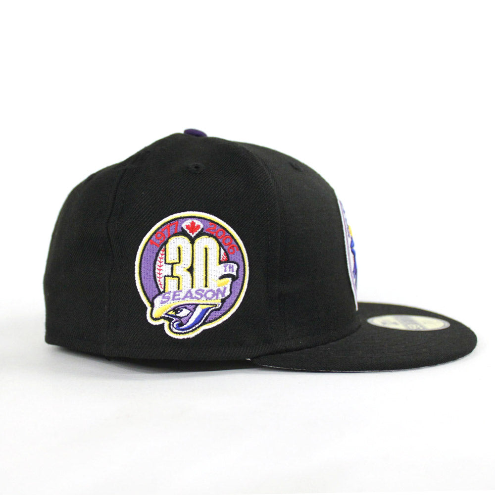 Toronto Blue Jays 59Fifty New Era Fitted Hat in Black Under Brim is Gray with 1977 2006 30th Season side Patch.