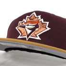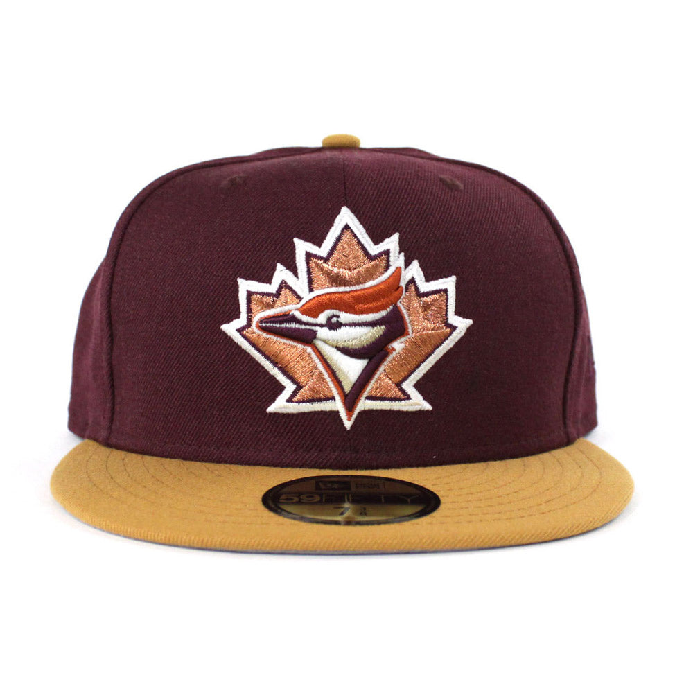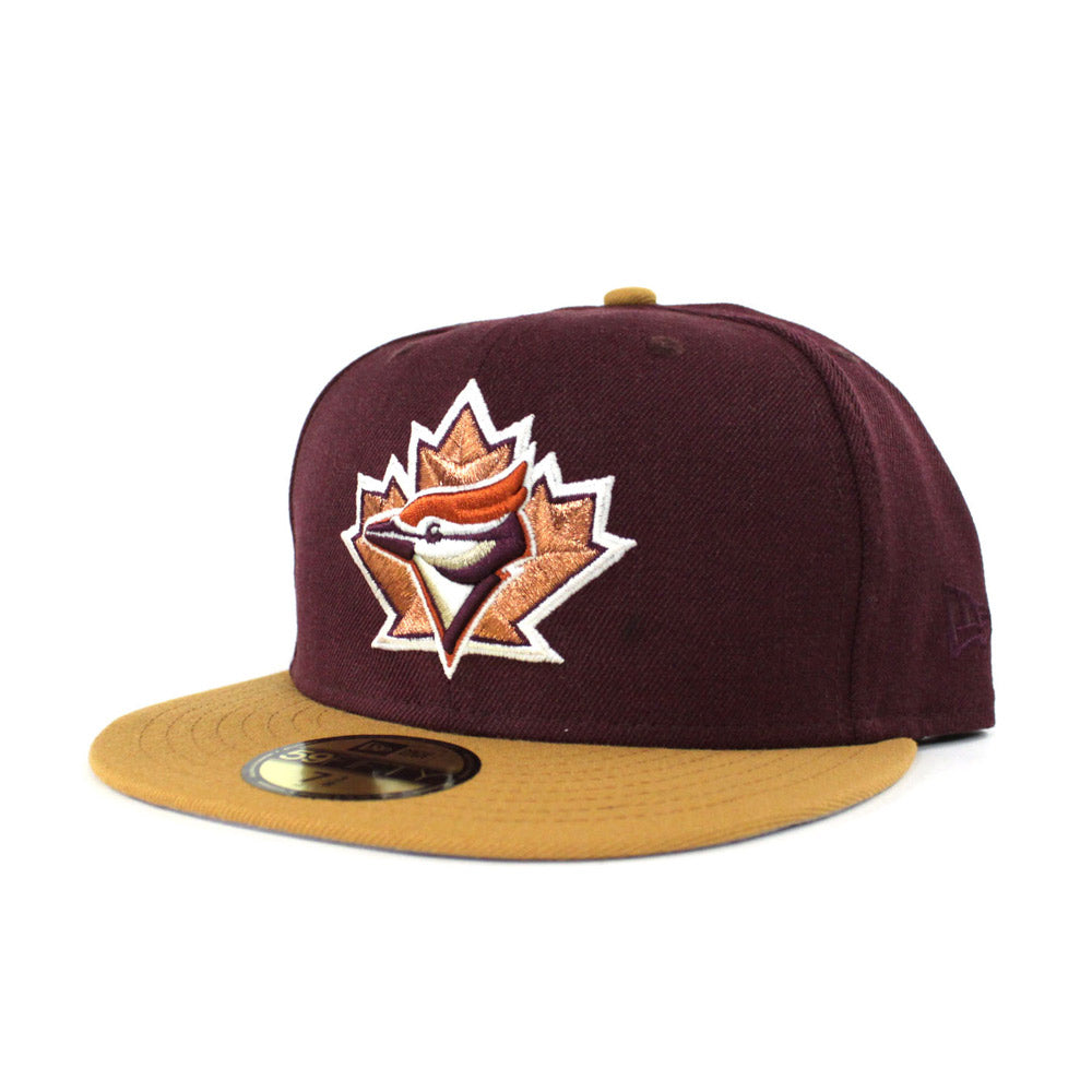 Toronto Blue Jays Canada Day New Era 59fifty Fitted Hat in Maroon. The under brim is Gray with a black sweatband. For Veneer Gum Pack.