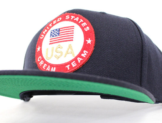 United States CREAM TEAM Snapback Hats (Navy Green Under Brim)