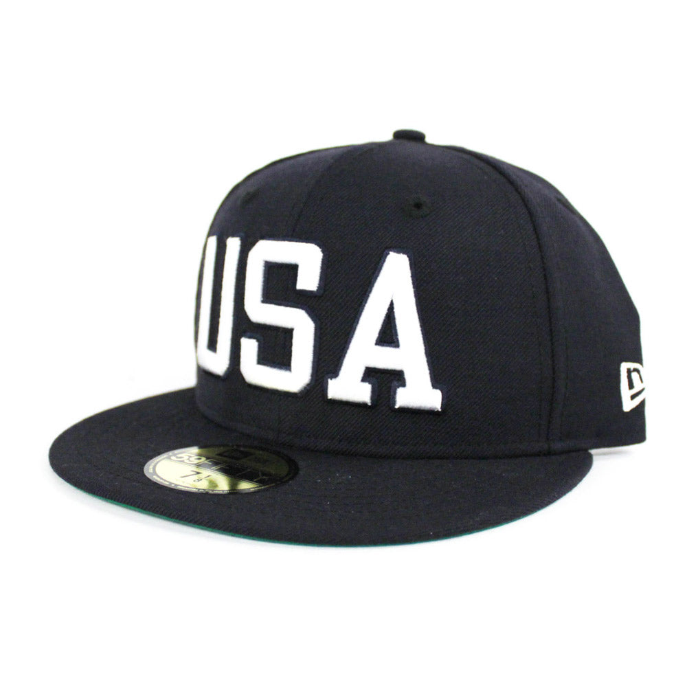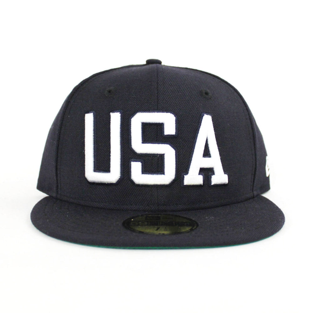 USA New Era 59Fifty Fitted Hat (Navy Green Under Brim)