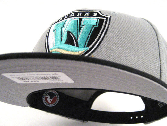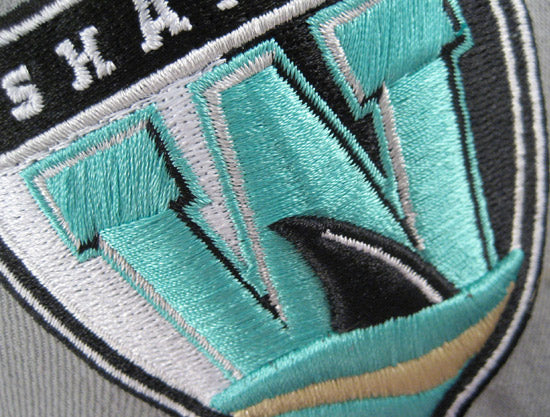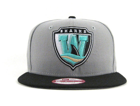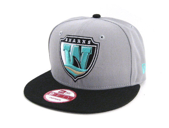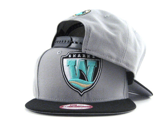 The Worcester Sharks are the AHL affiliate of the San Jose Sharks. This particular SHARKS New Era 9FIFTY Snapback Hat was made to match the previously release Air Jordan Retro 10 in the 'Liberty' color-way. The New Era SHARKS Snapback Cap is grey based with a black visor and snap. The logo features black, grey, white and teal with a small hint of metallic dust. The snapback is finished off with a gray under-visor.
