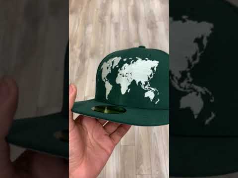 World Wide New Era Fitted Hat (Glow in the Dark Logo Green Gray Under Brim)